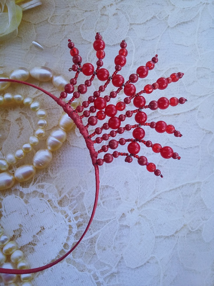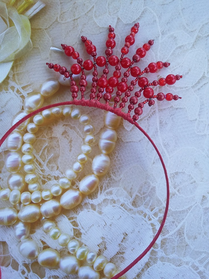 red wreath,Spanish crown,beaded comb,tall red tiara,red tiara,festive decoration,head accessory,head ornament,red head