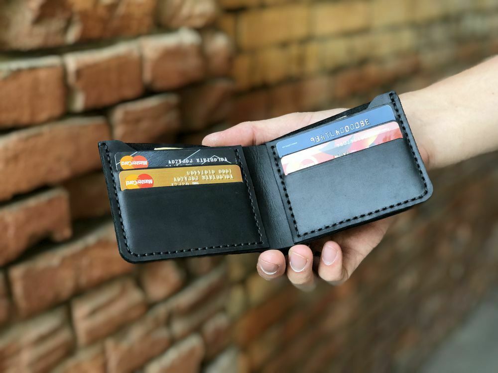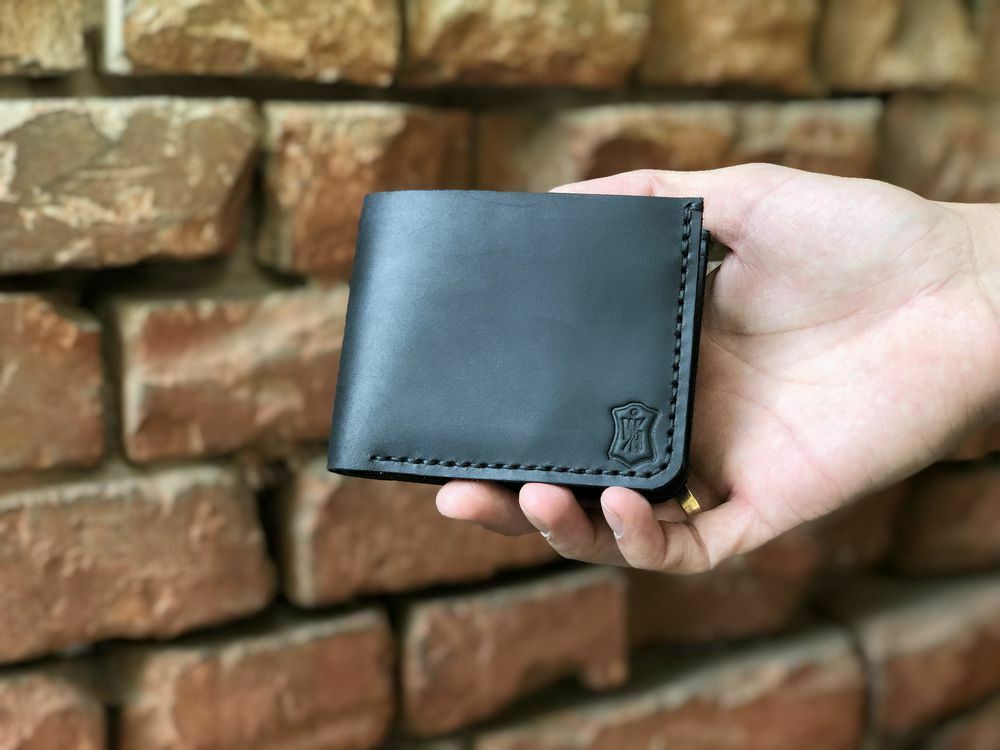 Handmade men's leather wallet Delaware black mens purse WB