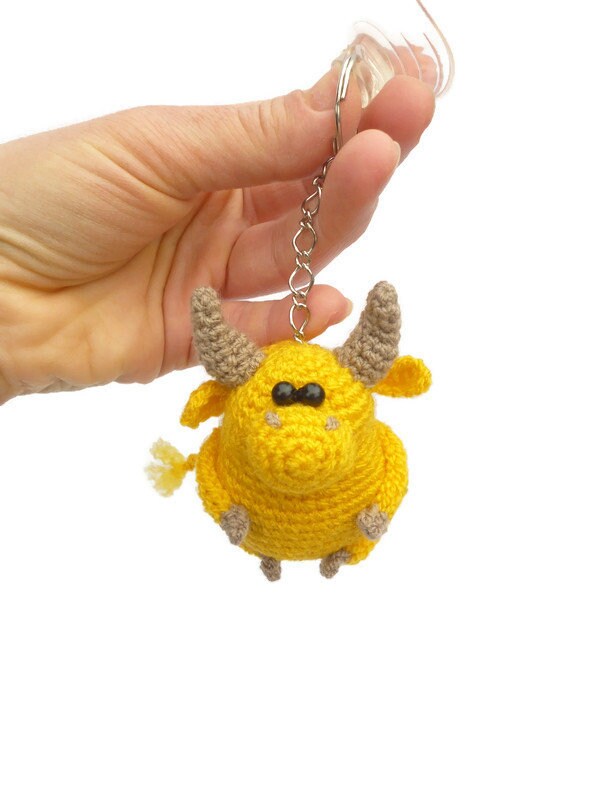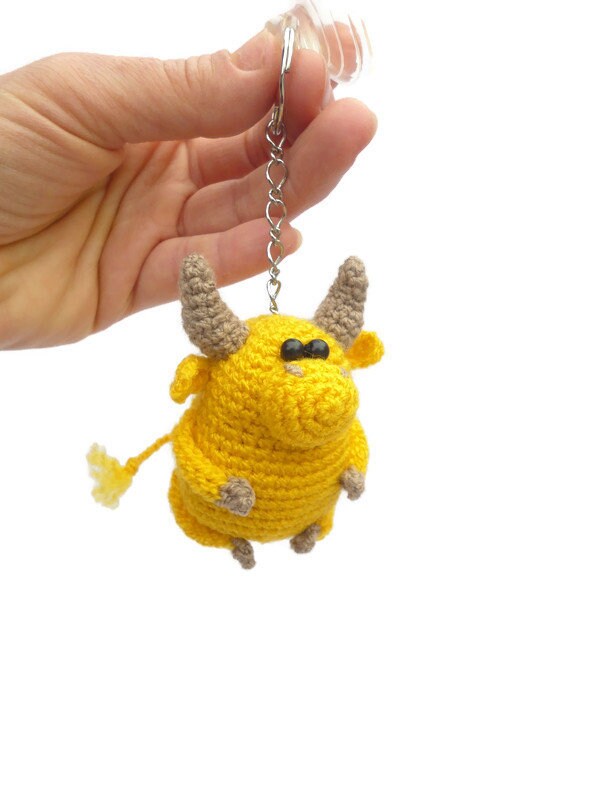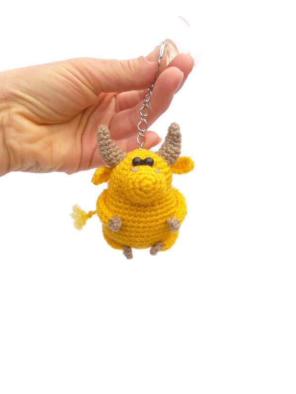 Crocheted Keychain Yellow Bull