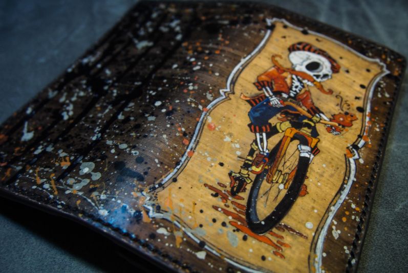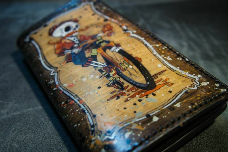 Handmade wallet made of genuine Italian vegetable-tanned leather, leather thickness 2-3 mm. The technique of drawing a drawing is pyrography. (Burning out) Wallet painting takes place in several stages, at first it is impregnation with various means that prevent the wallet from cracking and give the skin elasticity, then the application of color is an antique gel with a patina effect. After painting, the wallet is varnished to protect the paint from abrasion, and the varnish also protects the wallet from moisture. Perimeter stitching is done only by hand, with a waxed thread with a saddle stitch. Only a hand seam makes the product as strong and durable as possible. The ends of the product are polished and processed.