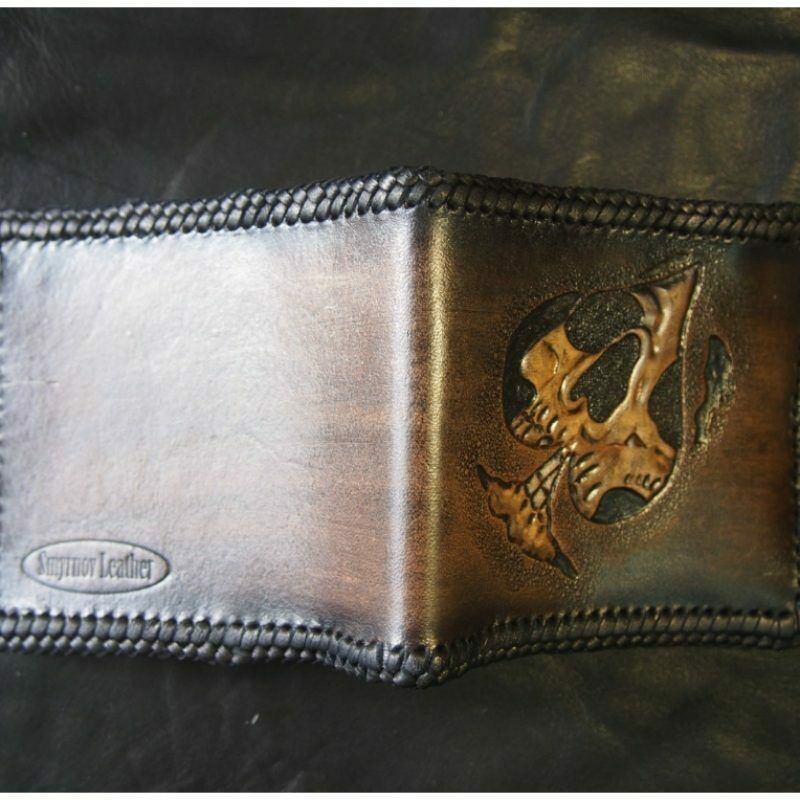 Men's Handmade Leather Wallet Skull of Spades Unisex