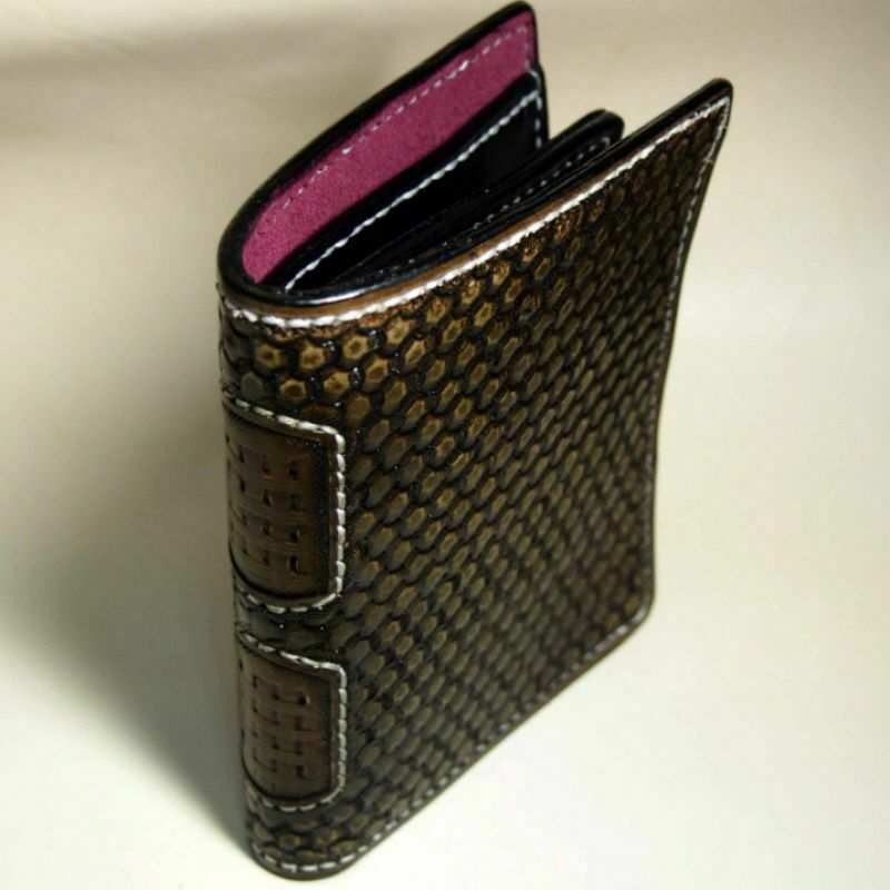 !!! We remind you that this is completely handmade, so some of the nuances, such as the tone of the color scheme, the minimum details, may differ. !!! This handmade wallet is made of genuine Italian vegetable tanned leather, leather thickness 2 mm. Embossing technique. The painting of the purse takes place in several stages, at first it is impregnation with a variety of chemistry, which prevents cracking of the purse and gives the skin elasticity, then the application of color is an antique gel with a patina effect. After painting, the purse is varnished to protect the paint from abrasion, and the varnish also protects the purse from moisture. Product size 15 * 12.5 cm Inside for the lining is used haberdashery leather, elastic but durable. 24 compartments for cards, one transparent window, one compartment for banknotes, we use only high-quality materials and a professional line of chemistry in our work, we are constantly learning, so that each product is packed in our gift wrapping. The product is coated with varnish,