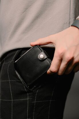 Men’s Money Clip in Genuine Leather – elegance and convenience in every detail. This stylish accessory combines a minimalist design with premium materials, making it a practical addition to your everyday look. Crafted from smooth genuine leather, it offers durability, reliability, and comfortable use. Its compact size fits easily in a jacket or trouser pocket, while the metal clip securely holds your banknotes. Additional card slots provide basic functionality for daily needs. STRUCTURE: • Metal clip for banknotes • 2 card slots SPECIFICATIONS: Material: genuine leather Leather type: smooth Color: black Model type: money clip Hardware: metal Size (H × W × D): 7.7 × 11 × 1 cm