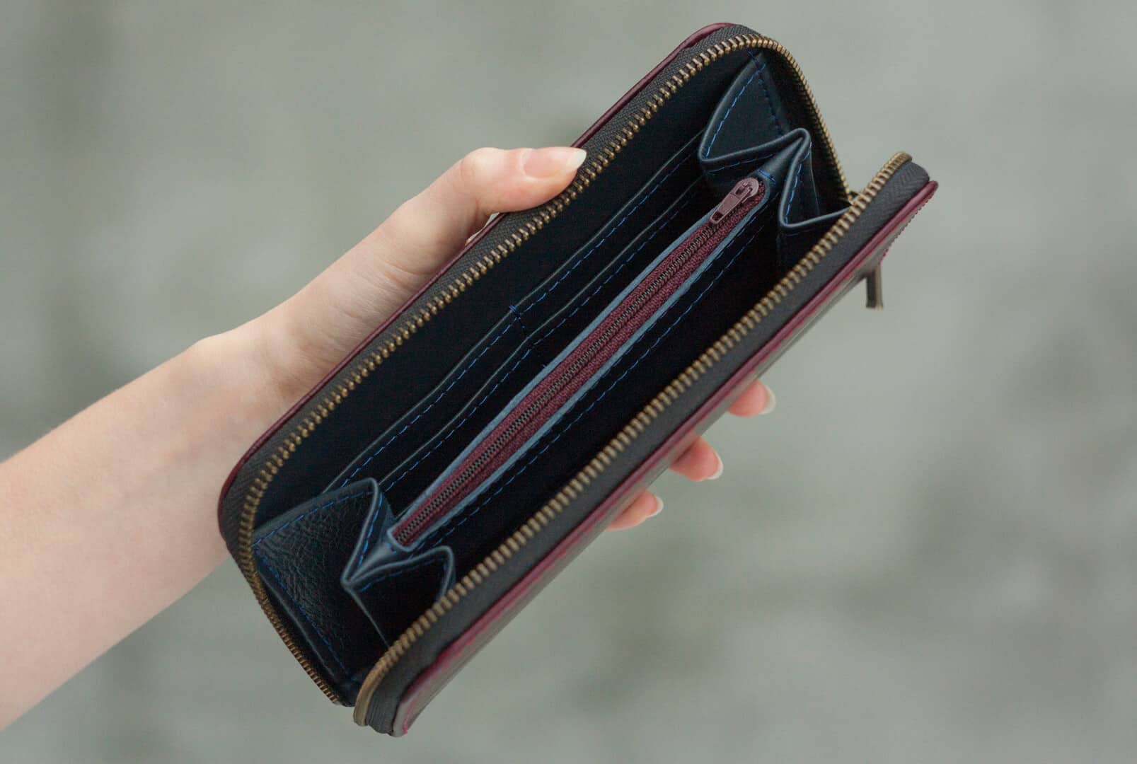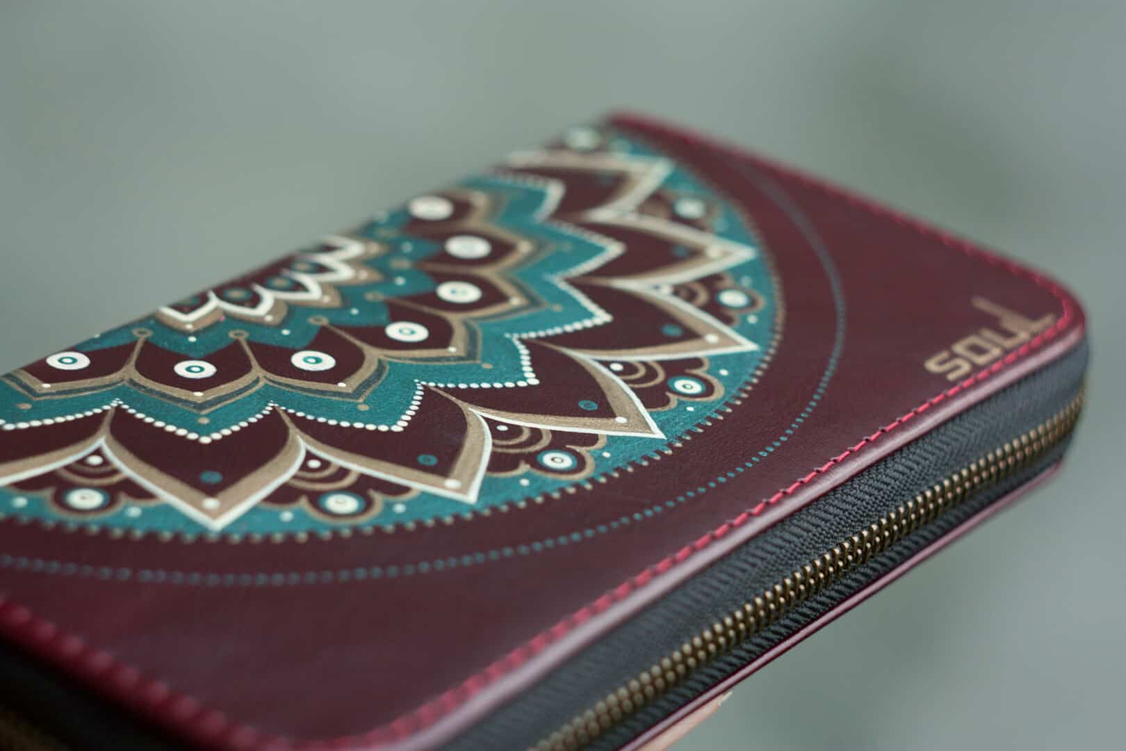 Wallet Women, Claret Zipper Wallet, Women Leather Purse, Card slots Wallet, Mandala, Large Wine Purse, Cherry Wallet, Zipper Purse