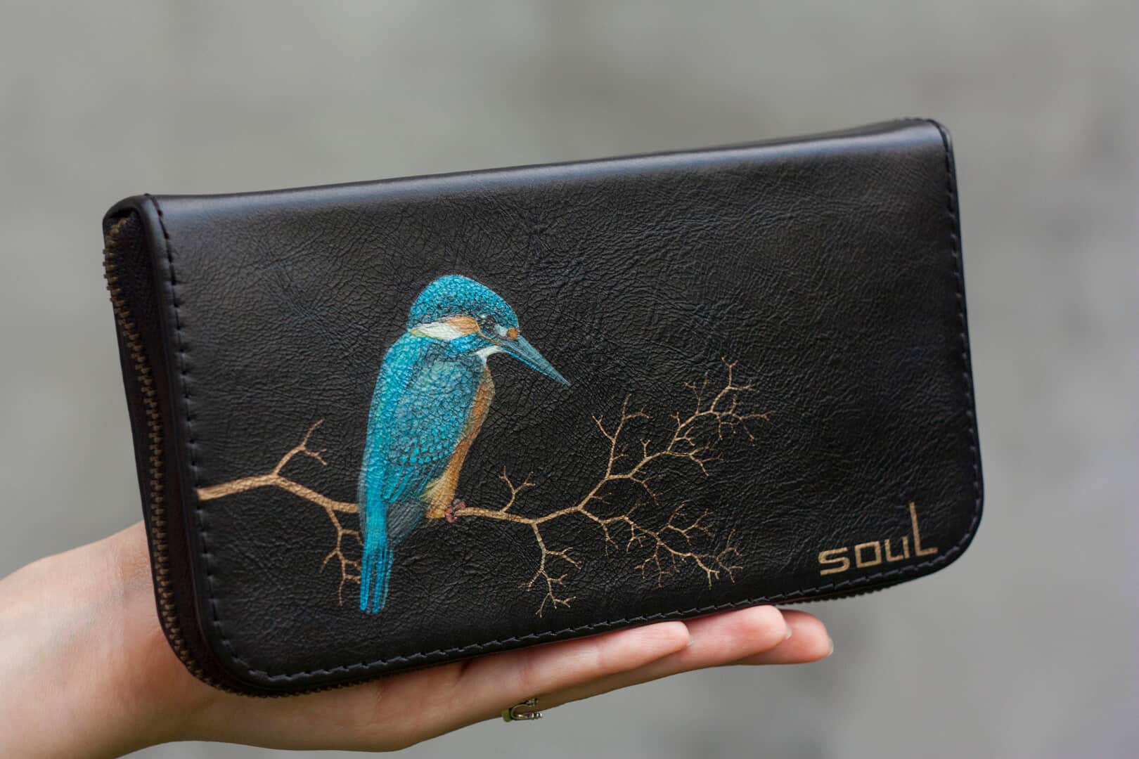 Women Wallet, Zipper Wallet, Black Purse, Man Wallet, Men's Leather Purse, Kingfisher, Large Wallet, Leather Card holder, Handmade Wallet