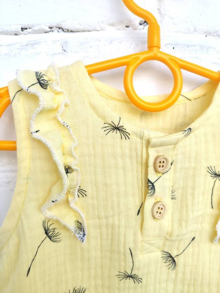 Baby Girl Muslin Fabric Summer romper, Cotton jumpsuit, Toddler Muslin romper, Yellow Girl outfit, baby shower gift, baby clothing