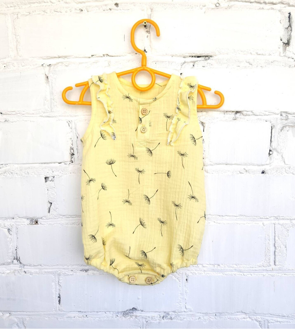 This yellow muslin romper is super soft, breathable and comfortable on delicate skin.