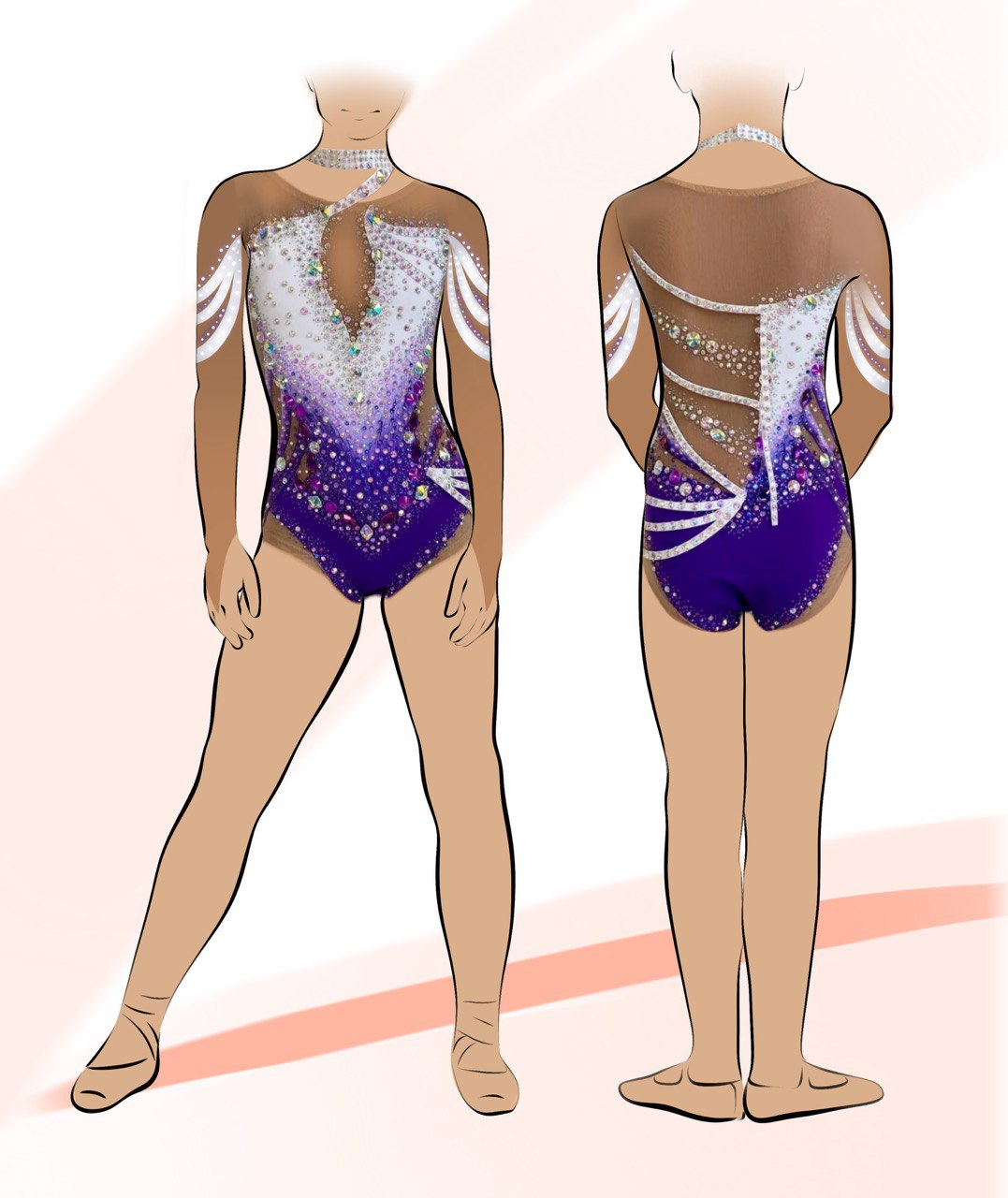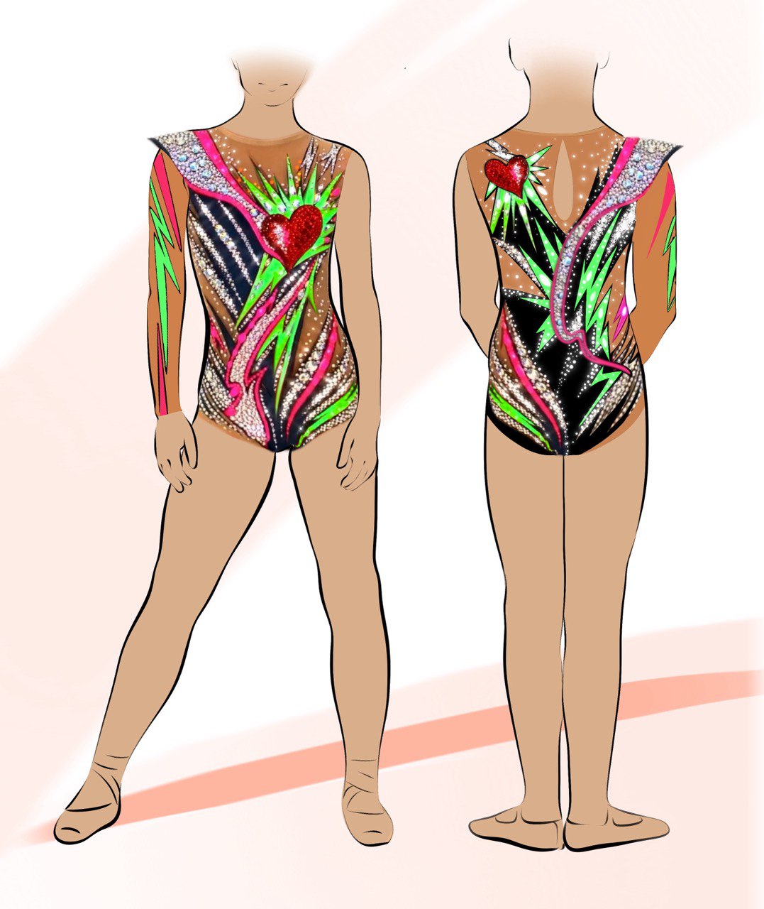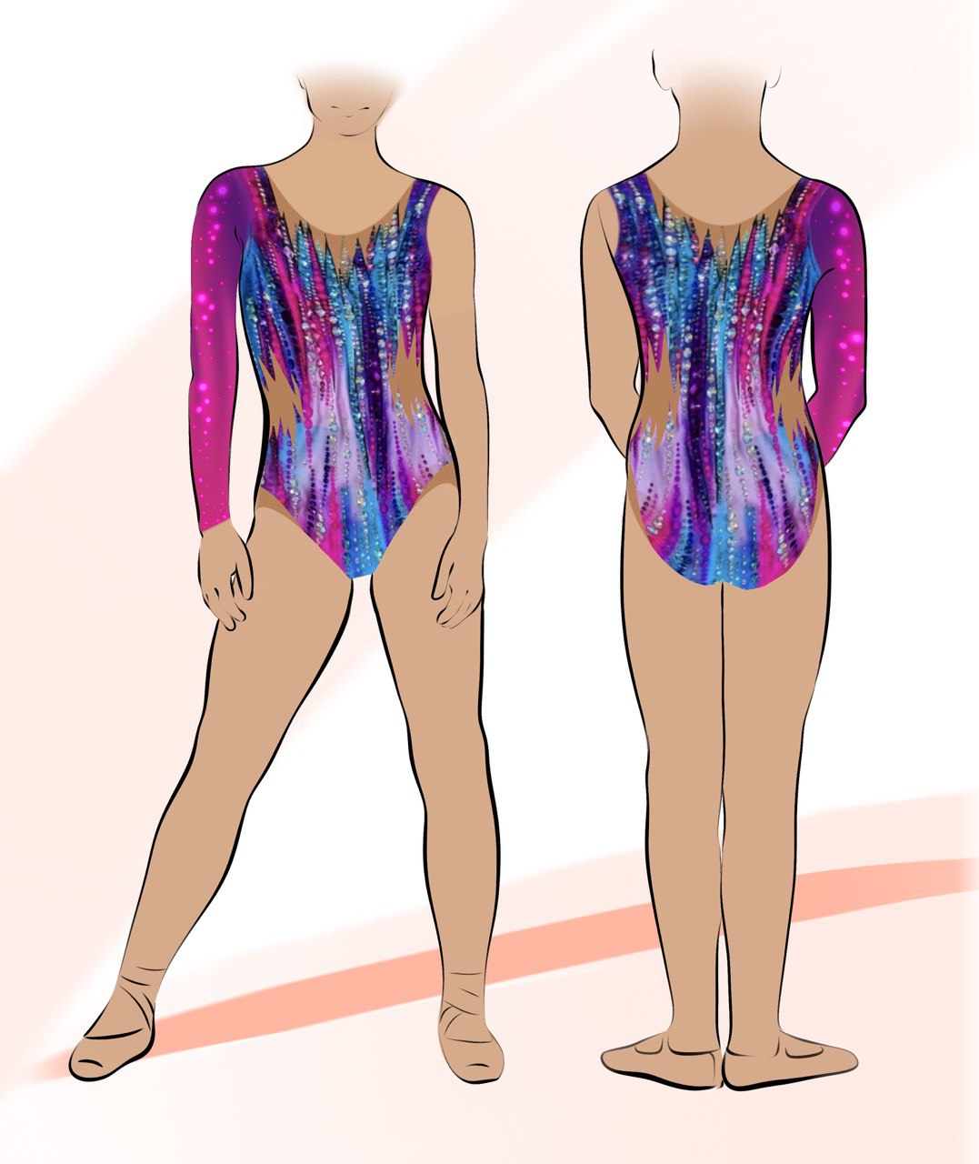 children's dresses for gymnastics competitions, multi-colored, decorated with rhinestones