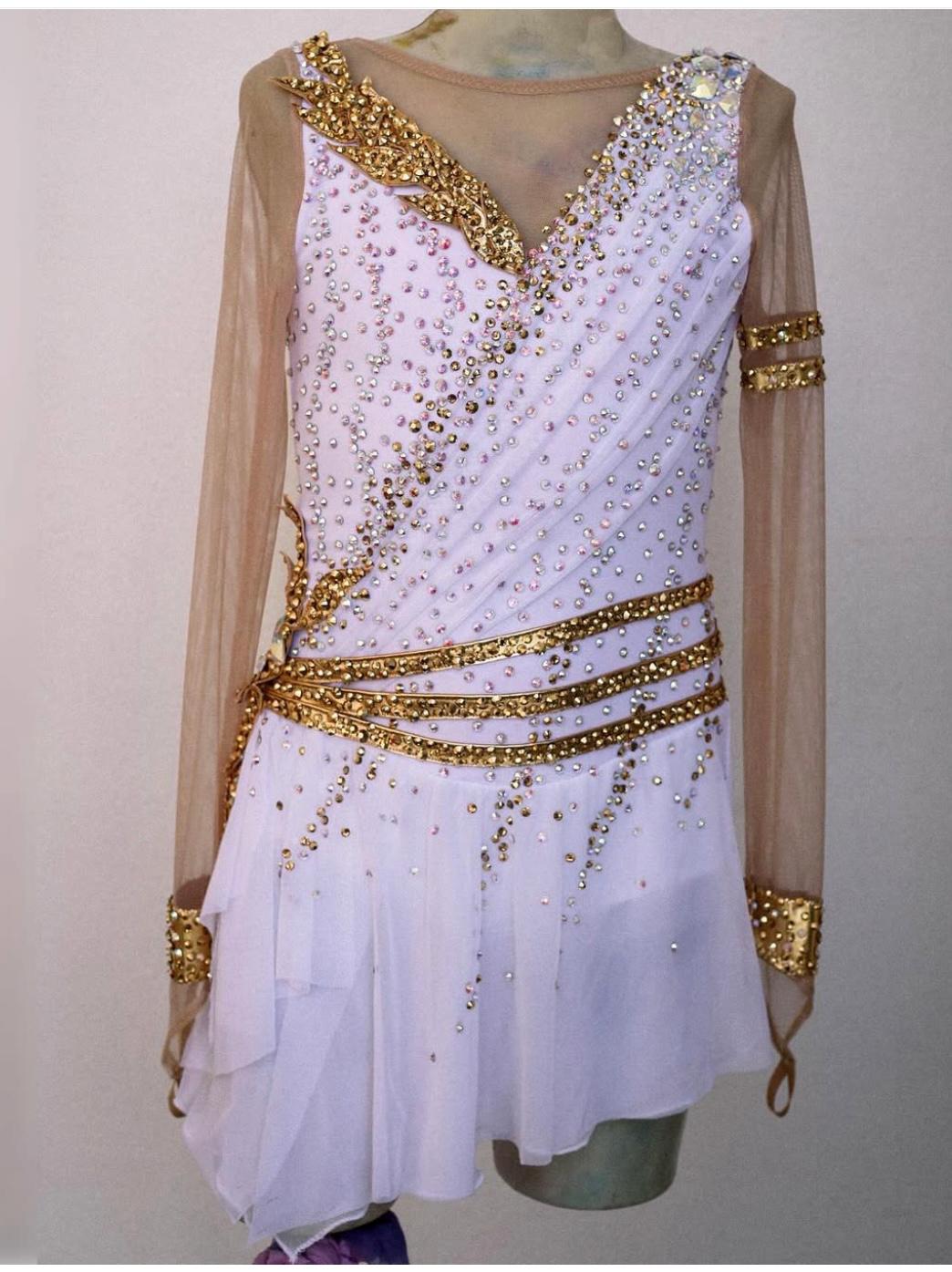 Includes fabric, sewing, author painting on fabric, applique, rhinestones 100 pieces size ss16 or 10 middle rhinestones (depends on leotard model) and scrunchie.