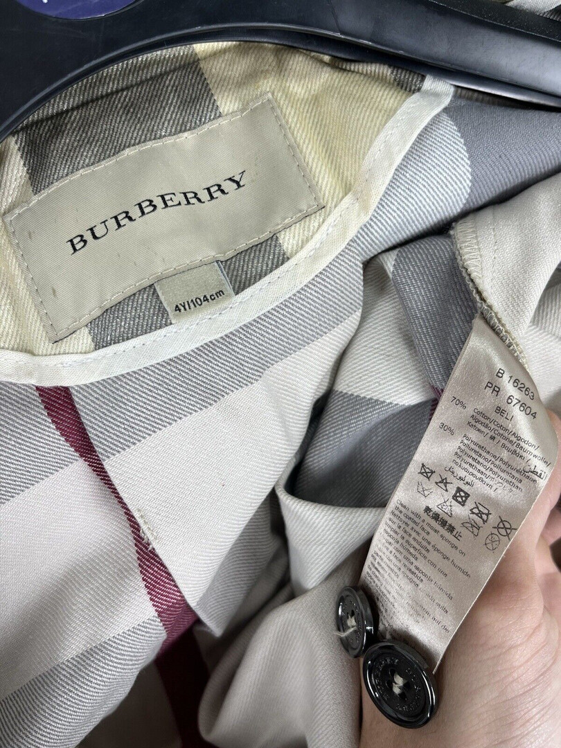 Children BURBERRY BELI Nova Check Plaid Beige Trench Coat Jacket Bomber 4Y/104cm