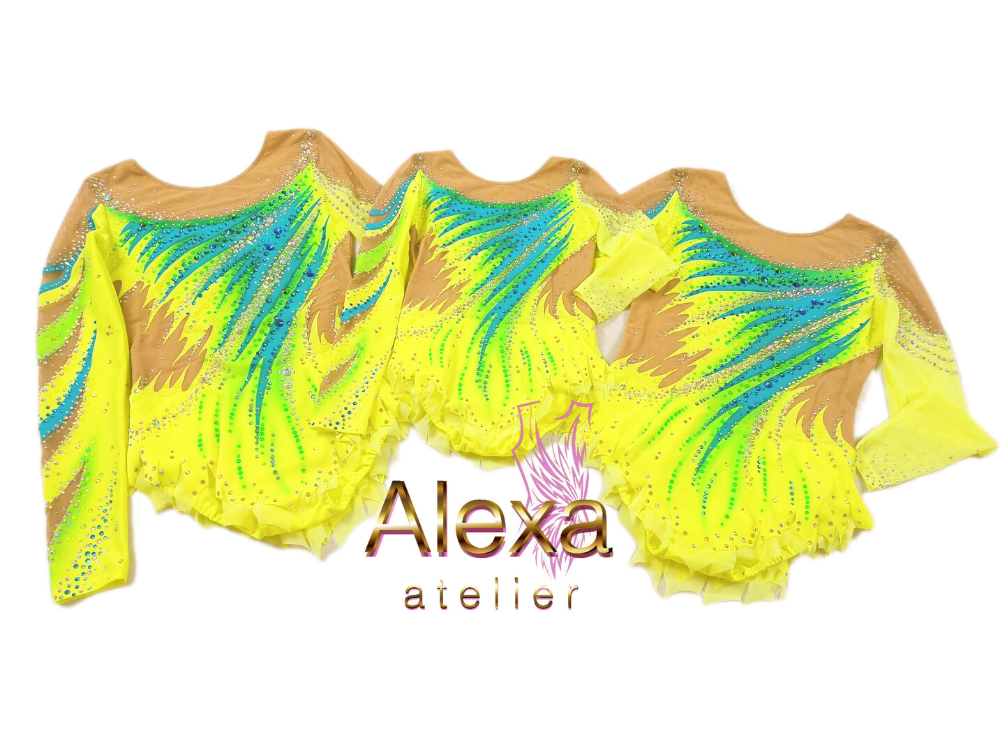 This leotard is completely handmade, made by our highly professional specialists, each of whom has a specialized university education and very extensive experience in this field. Our Atelier offers its clients a full range of services for the creation of leotards. You can choose any model you like in our store, or send us a photo of any model you like. But if you want something special and unique, then our designers will be happy to analyze all your wishes and create a sketch of a completely new and unique model. A very important step in our work is the fact that we never use standard patterns for the production of leotards. For each leotard, our designers create new patterns that will suit you as much as possible, which guarantees comfort and long-term use of the leotard. How to place an order for the production of leotard by individual measurements: 1. Send us a photo of the model you like 2. Send us your main measurements - bust, waist and torso 3. We will calculate the cost based on your data and send it to you with all the parameters of the order (production time, number of crystals, etc.) 4.You make payment 5. We get to work 6. We will send you a photo of your patterns 7. We send you a photo of the materials that will be used in the production of your new leo 6. We send you a photo of the new leotard before we start decorating it with crystals 7. Final photos and videos of your new leotard Sports for which we make leotards: - gymnastics - acrobatic gymnastics - figure skating - gymnastics - synchronized swimming Order production time: - standard 2-3 weeks - express 7 days Delivery: ! all parcels with your orders are fully insured and in case of non-receipt of the parcel, you are guaranteed to receive a refund of your funds - UPS Express - 12-16 days - DHL express - 9-12 days Payment: - Paypal - your payments are fully insured by PayPal, which guarantees that you will receive your order or receive a refund. Our managers will answer any of your questions about leotards in any way convenient for you at the addresses below: We look forward to seeing you in our Atelier: Our store at Etsy - AlexaAtelier.etsy.com Our store at Lavky - lavky.com/atelier-alexa E-mail: alexa.atelier.rgl [!at] gmail.com Facebook: @alexa.atelier Instagram: atelier_alexa YouTube: Alexa Atelier Pinterest: AlexAtelier TikTok: @alexaatelier_leotards