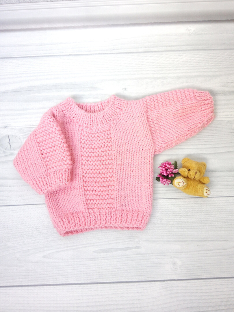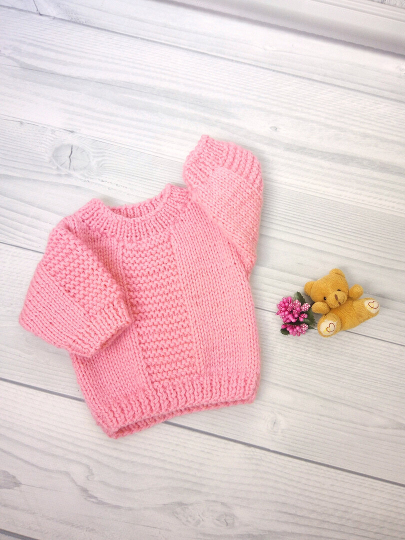 Handknitted baby sweater Girl pullover Pink infant jacket Toddler girl cardigan Grandchildren gift