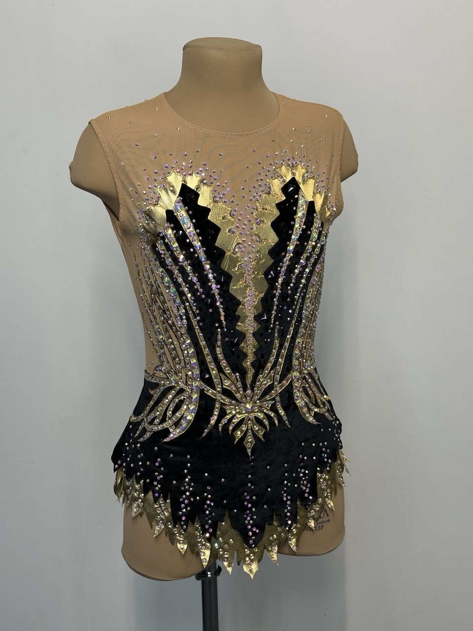 Rhythmic Gymnastics Leotards RGL_202301 ”Colorful Life” combines a bright bi-elastic supplex fabric – polyamide with the addition of elastane and a beige mesh or fabric to simulate a naked body. Production of materials Italy, England. The fabric stretches well, does not hinder movement. The colors are bright and saturated. To give the effect of volume, 2D and 3D applications were used, as well as additional hand-painted details.
