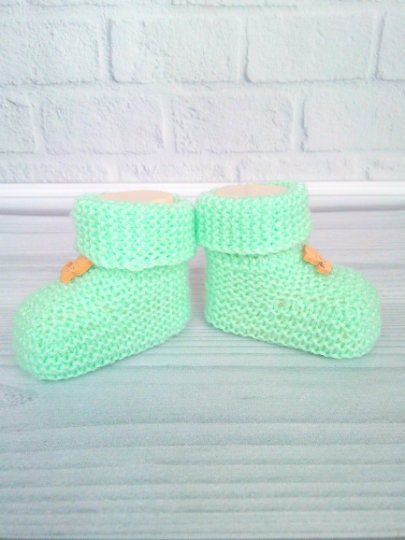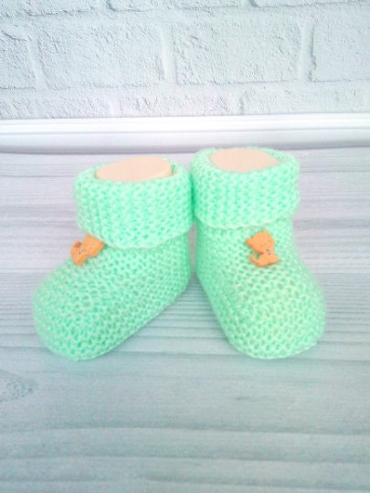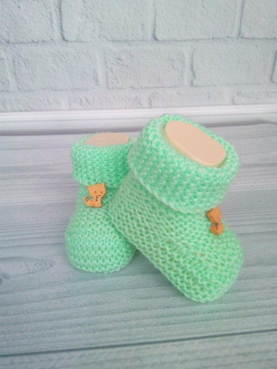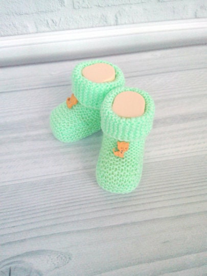 Mint knitted baby boots Newborn baby shoes Infant booties Baby shower gift Baby kitten buttons Shoes