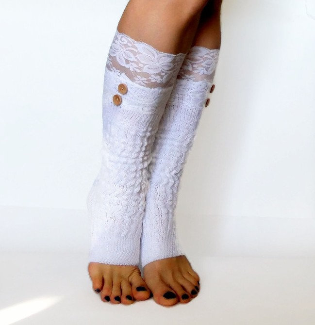 Slouchy Button-Down Ankle Boot Cuff White or Gray Women Lace Socks Toppers Cabled leg warmers winter fall fashion accessories Leg Warmers