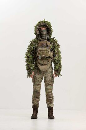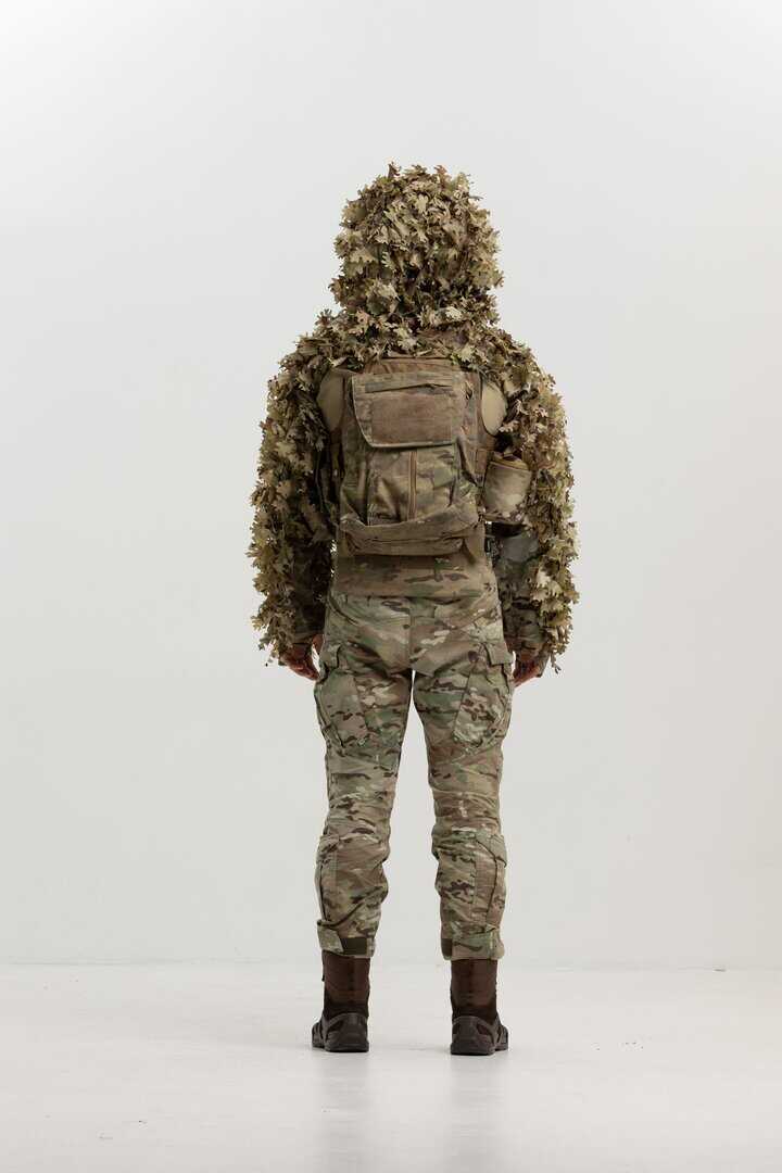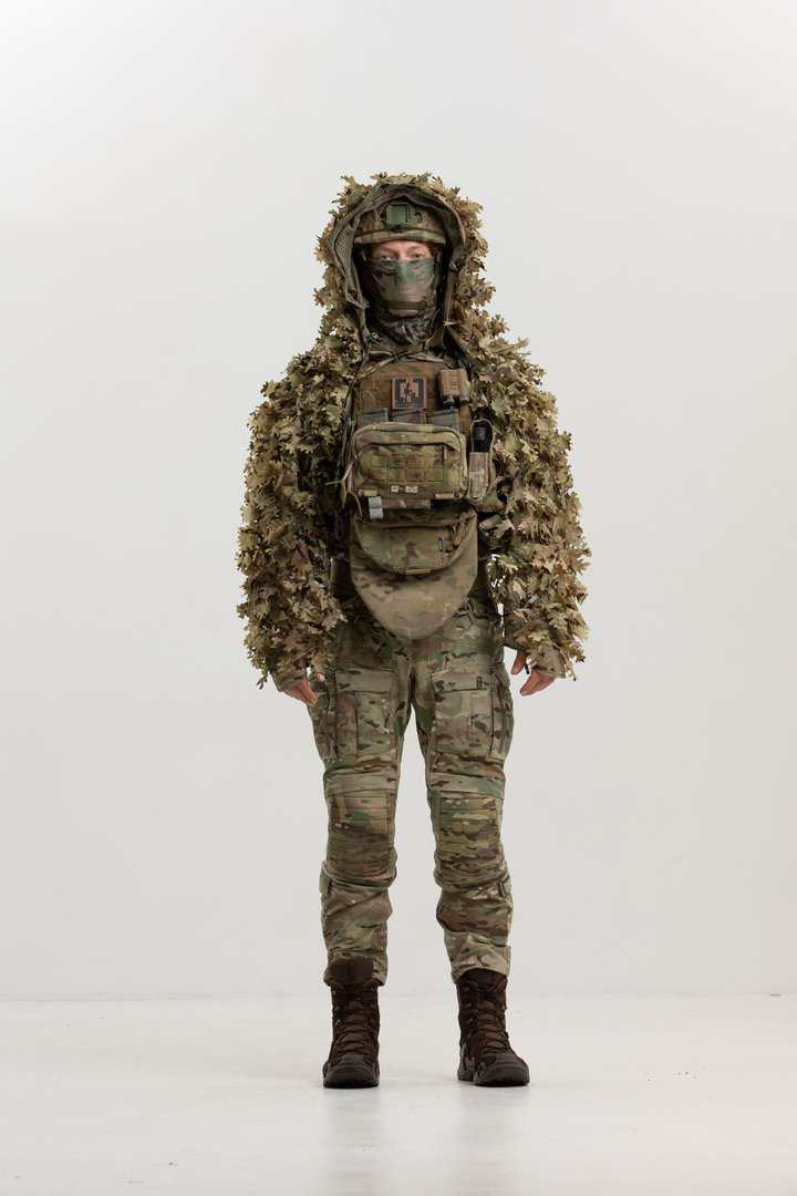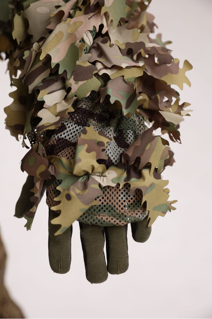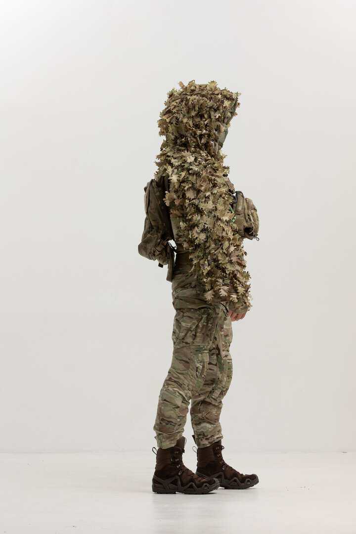 The cape also includes fabric leaves made from genuine MultiCam material (USA) with double-sided coloration to achieve maximum concealment effectiveness in diverse environments.