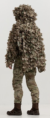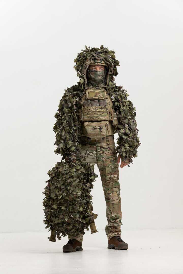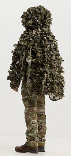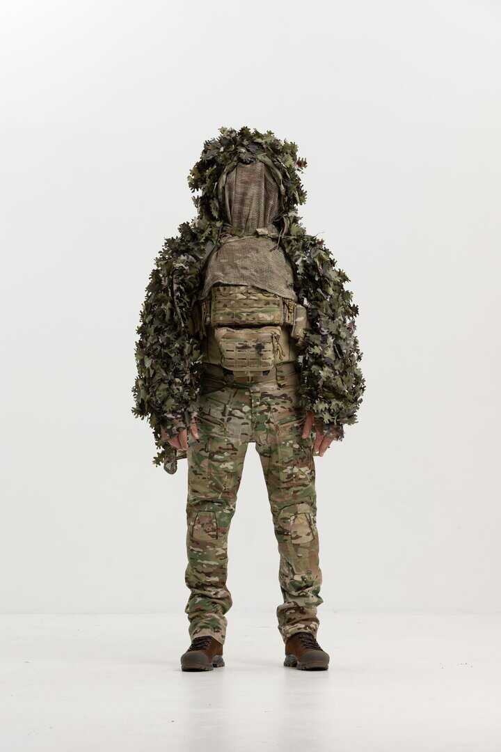 The camouflage raincoat has additional straps that allow you to attach natural vegetation or artificial leaves at different angles for perfect camouflage. In addition, the double-sided camouflage leaves are sewn in such a way that they blend in perfectly with the natural environment.