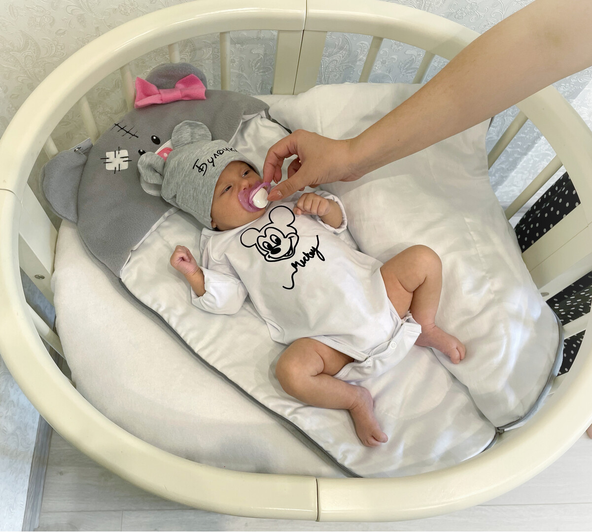 Its advantages over other overalls are the absence of sleeves and pants. Yes! There is no need to stick thin hands into the sleeves and nothing presses! The baby sleeps easily on his side! Legs and arms together, which is warmer! The baby assumes a position like that of a mother in the stomach, and his sleep is strong and long! You can adjust the tightness of the clasp yourself. Get a hat as a gift.