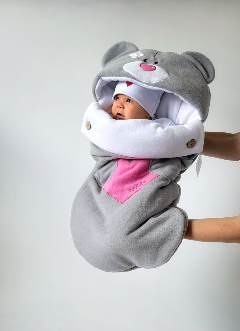 GREY! For girl! Hat as a gift | Baby bear Sleeping Bag | Baby warm Fleece blanket | New Baby Gift | Baby shower gift | Sleeping bag in the stroller