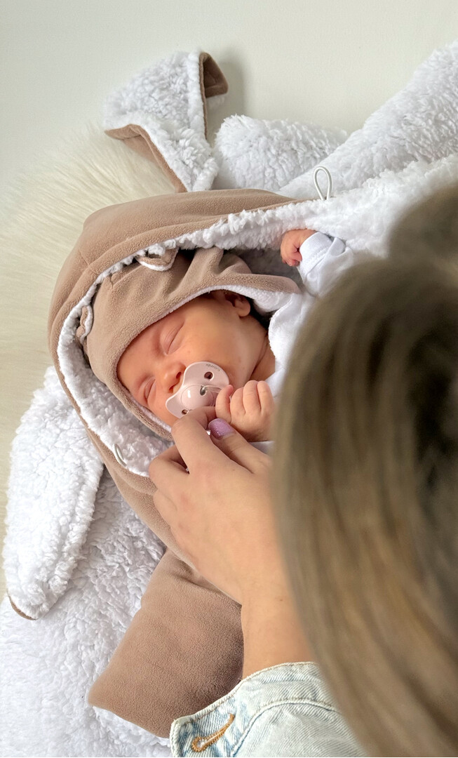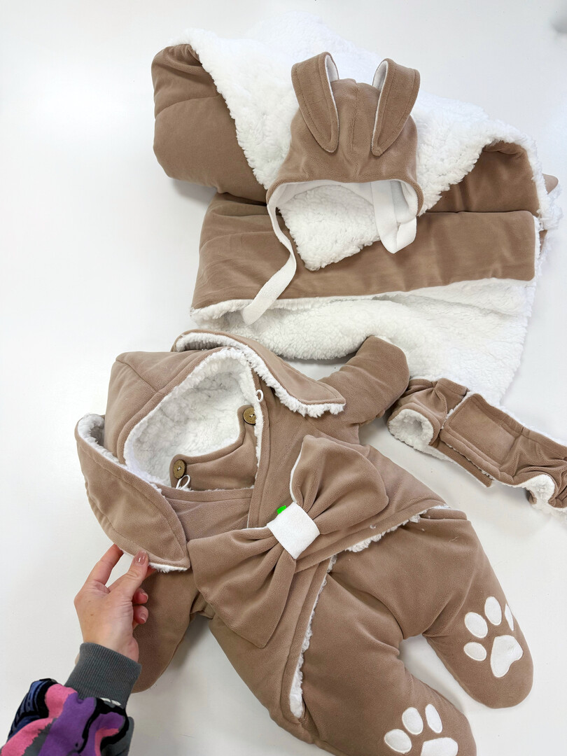 Warm set for newborn. 0-3 months. Bunny jumpsuit