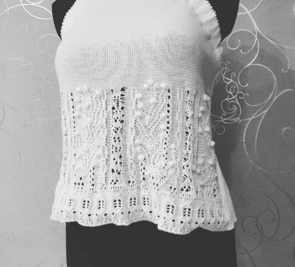 Stylish summer tunic handmade crocheted with an openwork pattern, long. size M composition: cotton