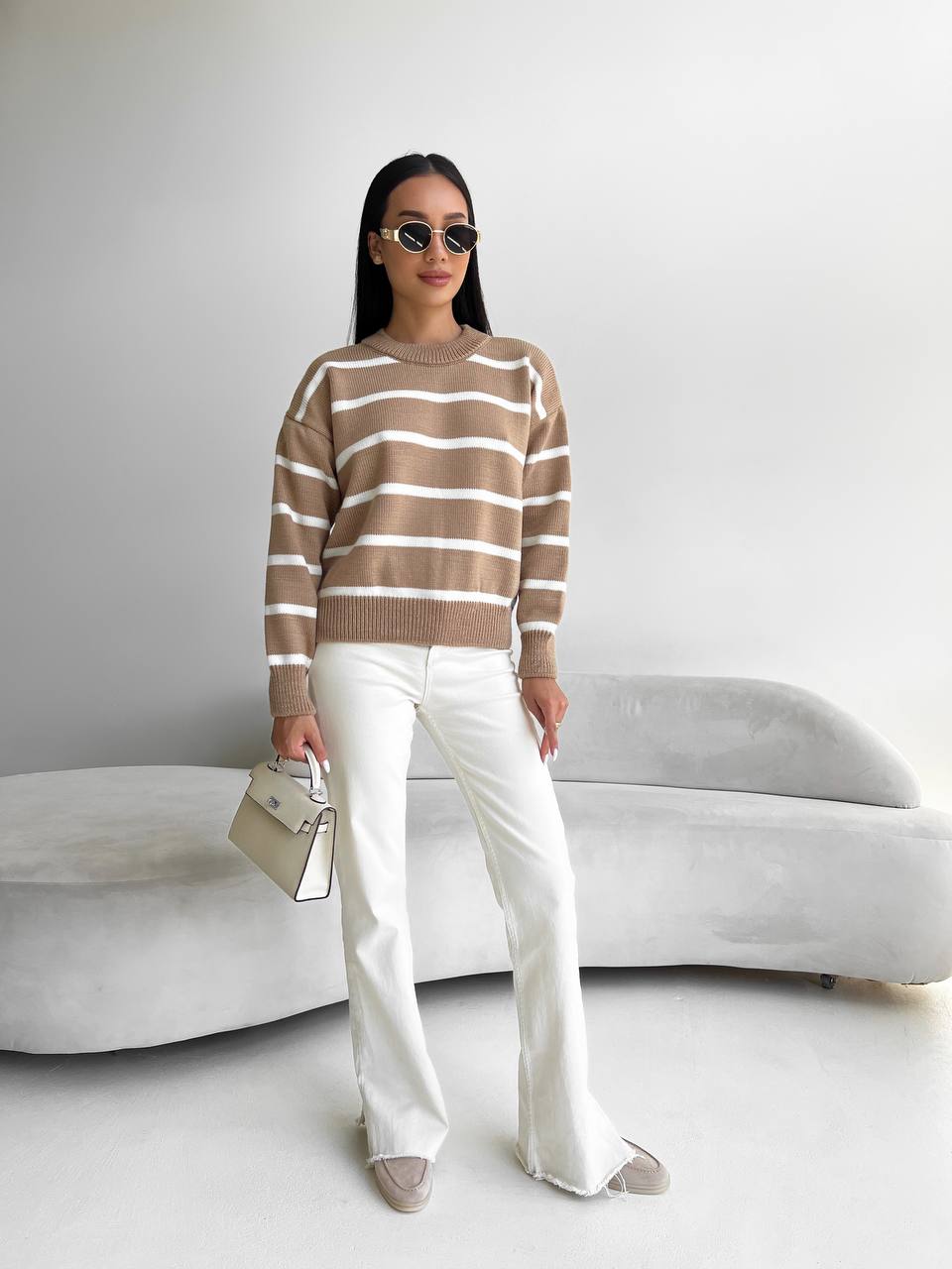 A womens striped jumper is a stylish and versatile garment for any season., Art. TRENDY сolor:Camel-white