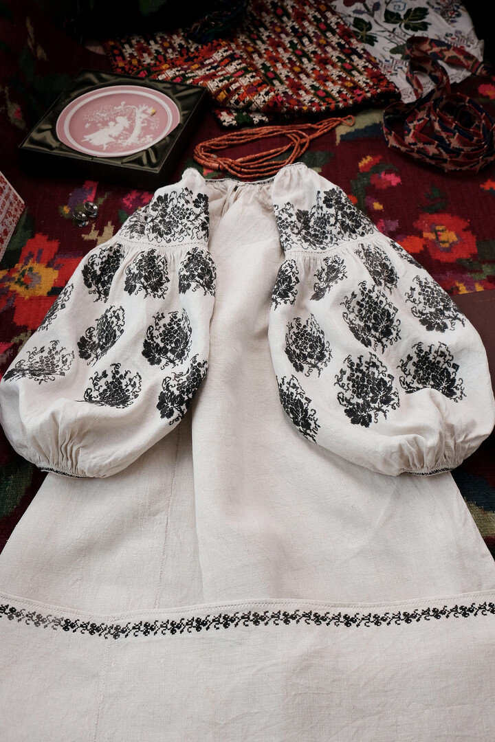 Black embroidered dress Very nice dress Rare dress Excxlusive dress Interesting decorated dress Hemp dress Antique dress Authentic dress