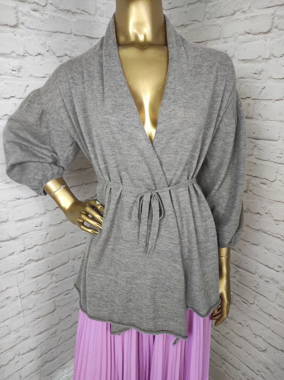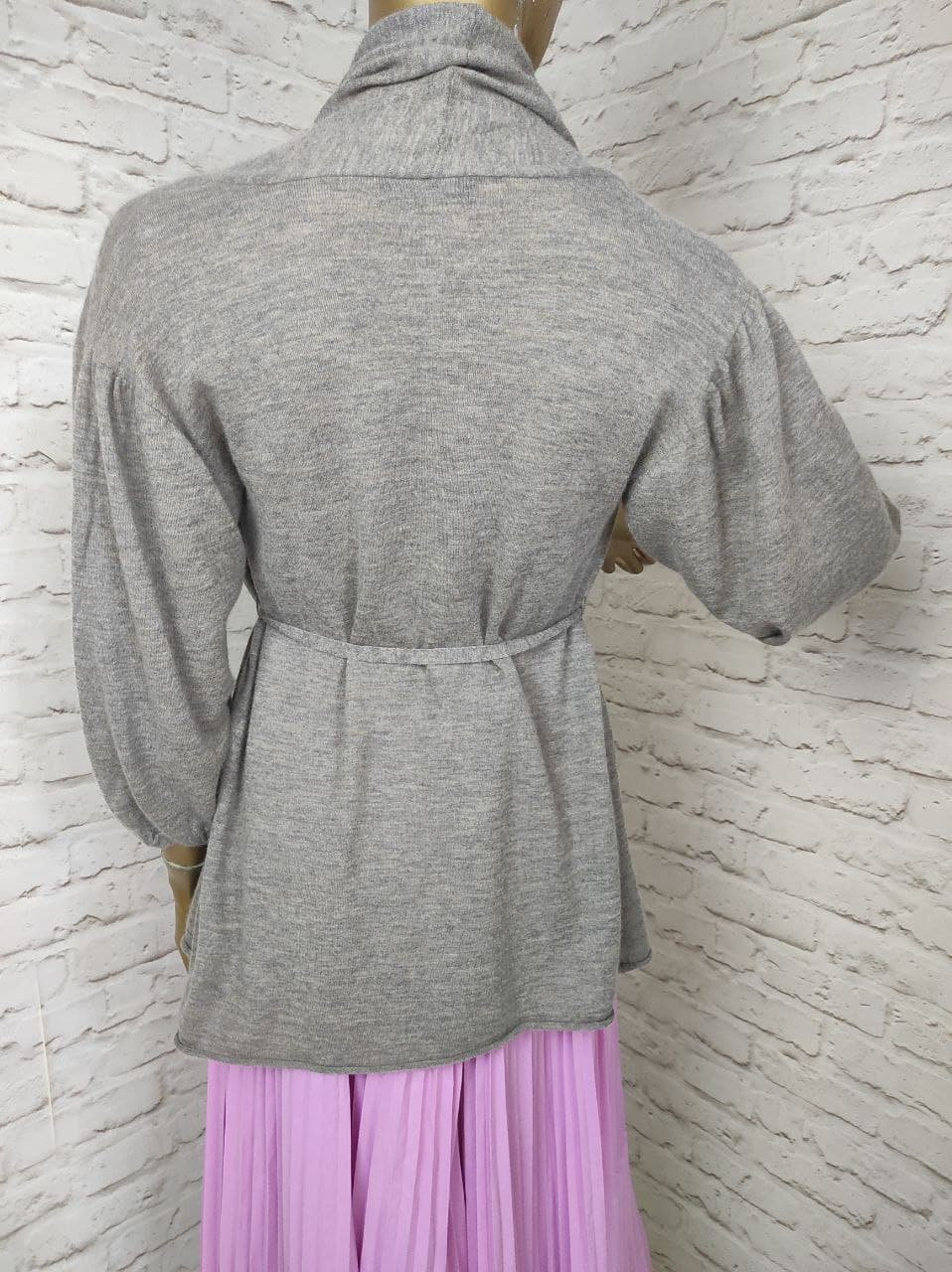 Bruno Manetti Cashmere Crop Cardigan Baloon Half Sleeve Belt Size S IT 42