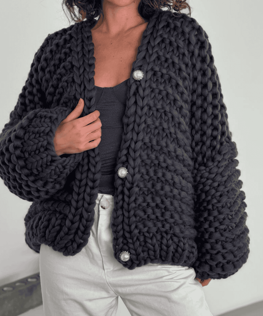 Womens Cable Knitted Cardigan colorblock and Baloon sleeves cardigan