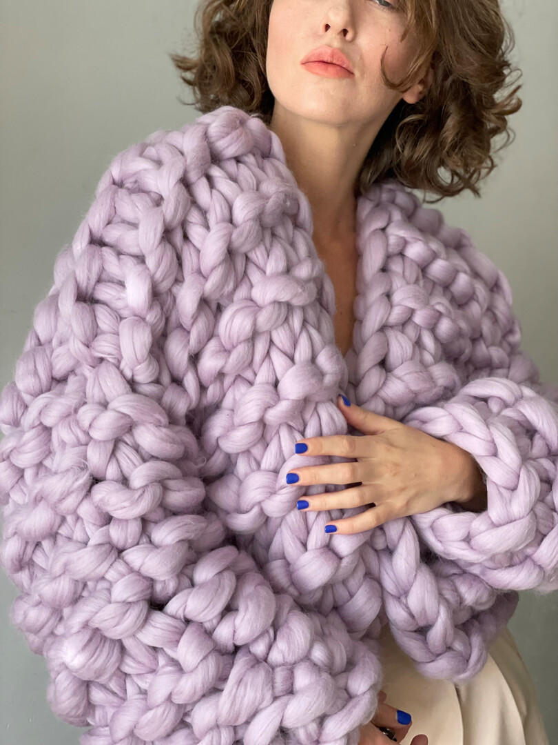 Introducing our cropped cardigan inspired by the classic oversized cardigan and the perfect addition to your wardrobe. Hand knitted with care, this cozy chunky knit cardigan is the perfect layering piece for any occasion.