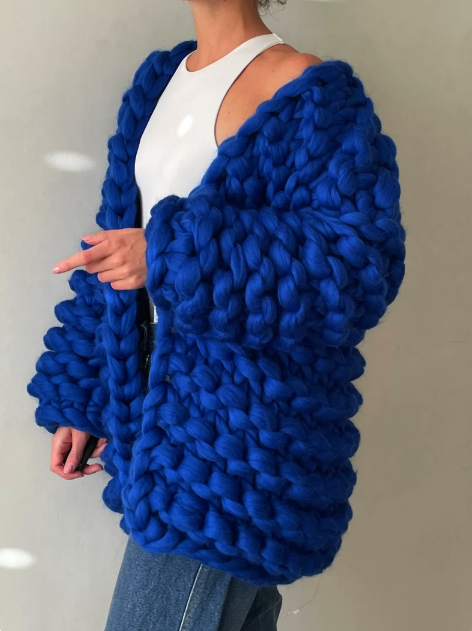 Chunky Knit Long Cardigan Blue