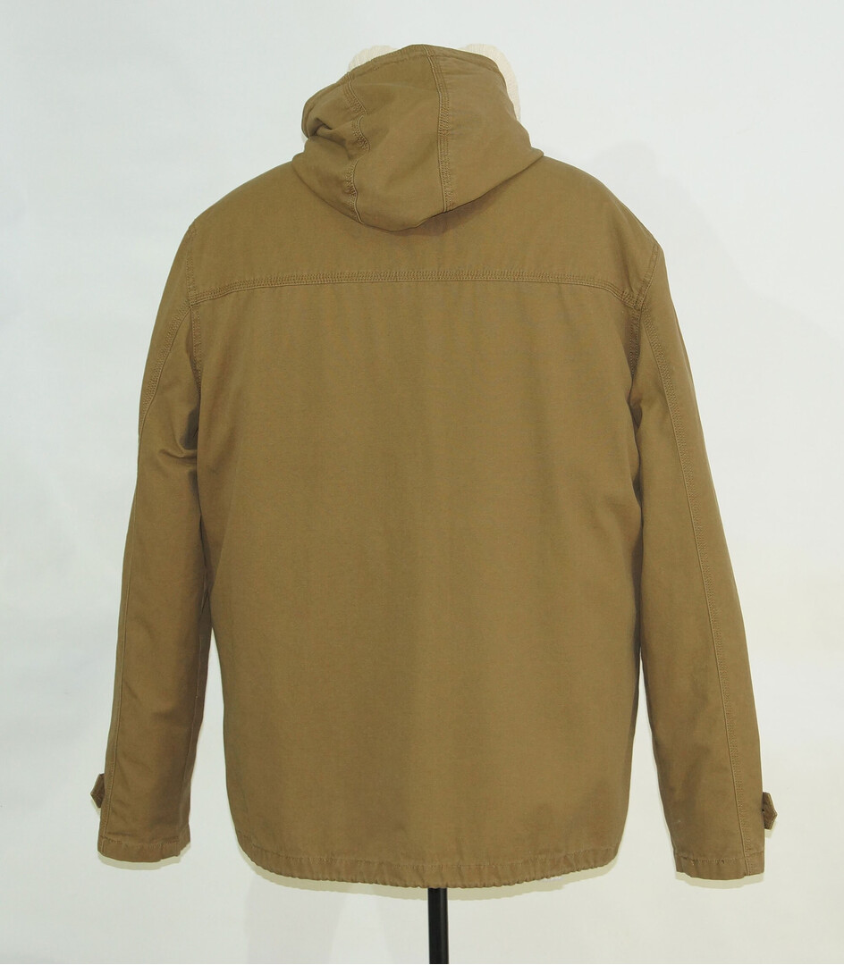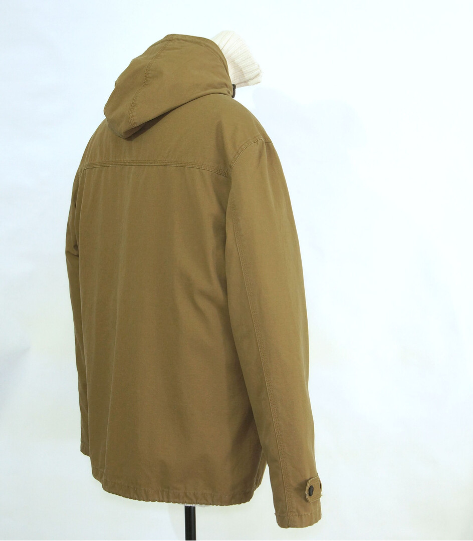 Cotton Canvas Khaki Zip Up and button windbreaker Parka Jacket With A Hood, marked Size XXL, EUR chest 119-124 cm