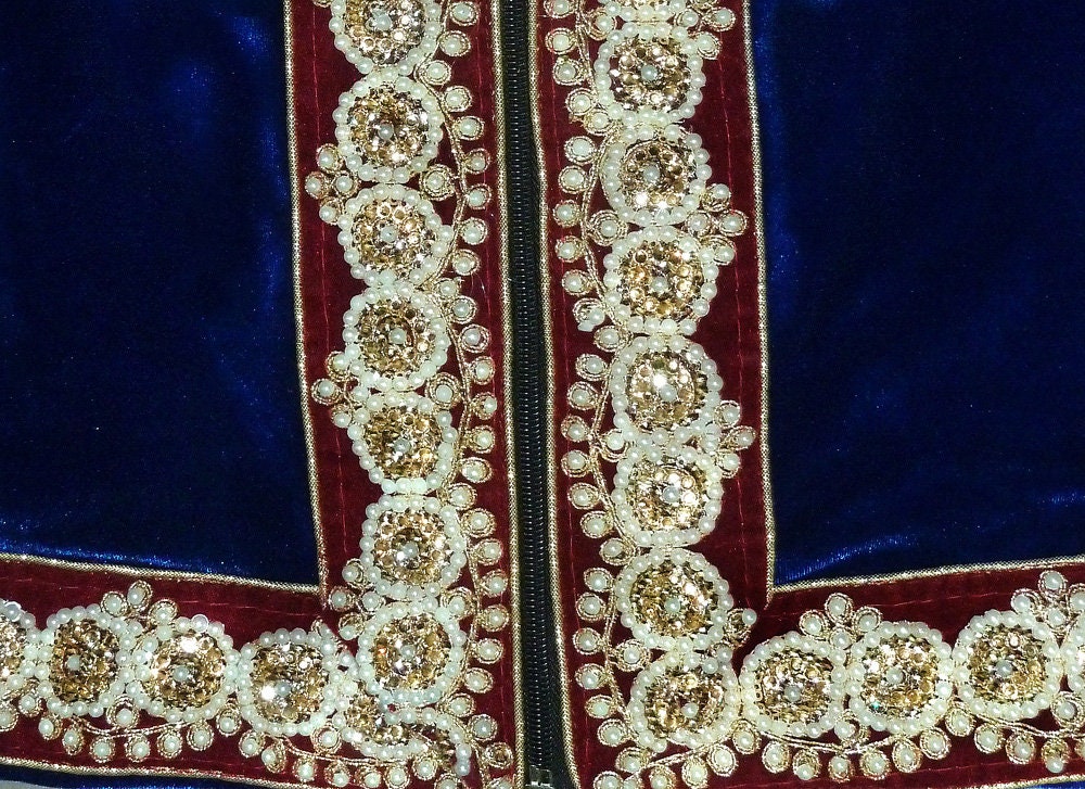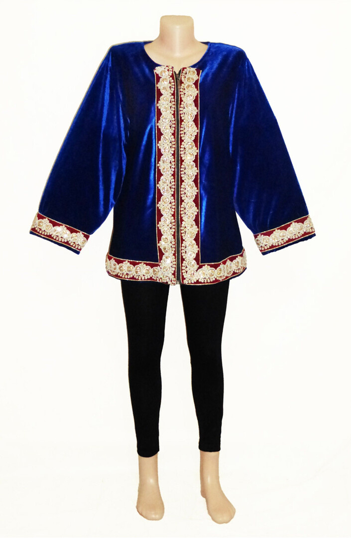 embroidered in pearl & gold blue velvet jacket uzbek #t700