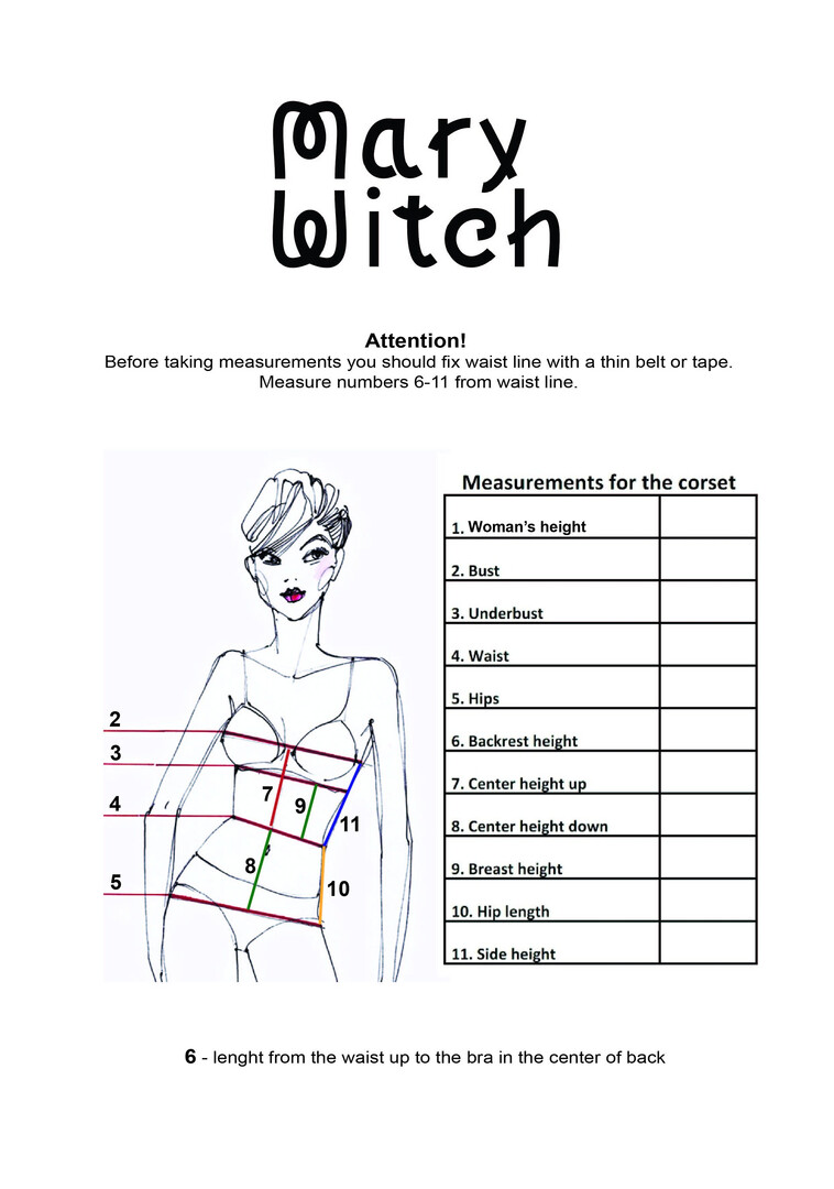 To create a corset, I need your measurements. Before I start making the corset I ask you to fill in a measurement chart. I will also contact you while drafting the pattern if need be.