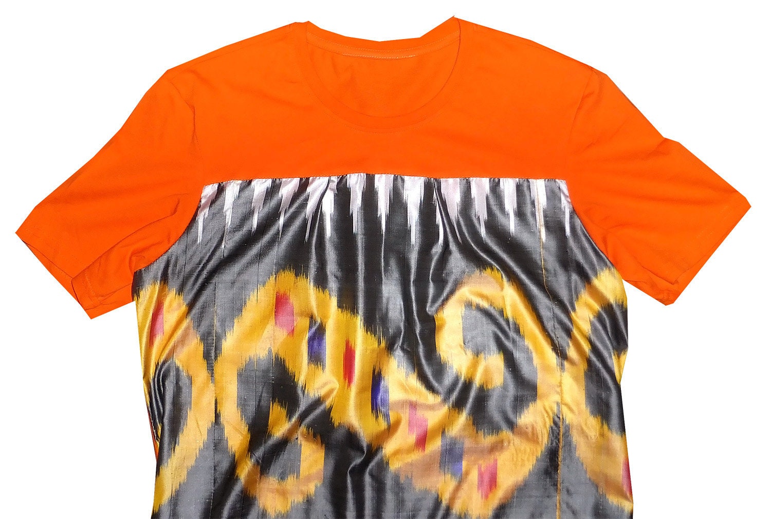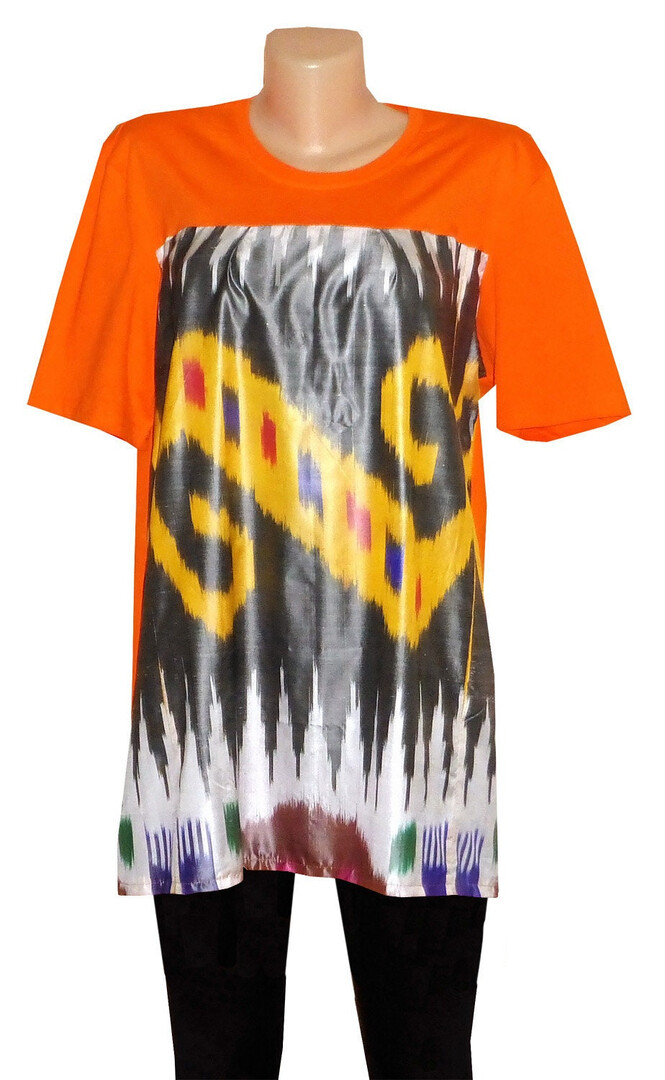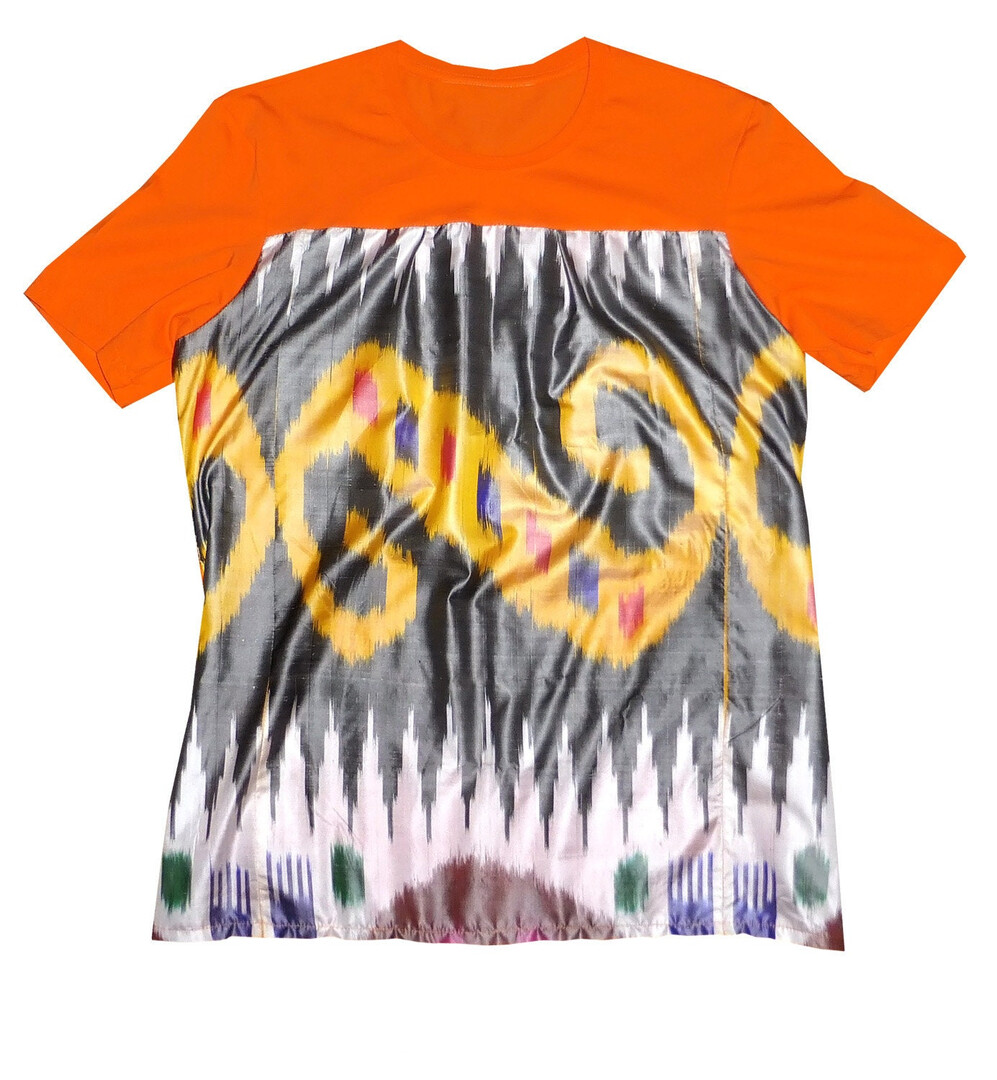 Free Size uzbek natural silk ikat handmade T-Shirt Tank Top cotton 100% #a10928