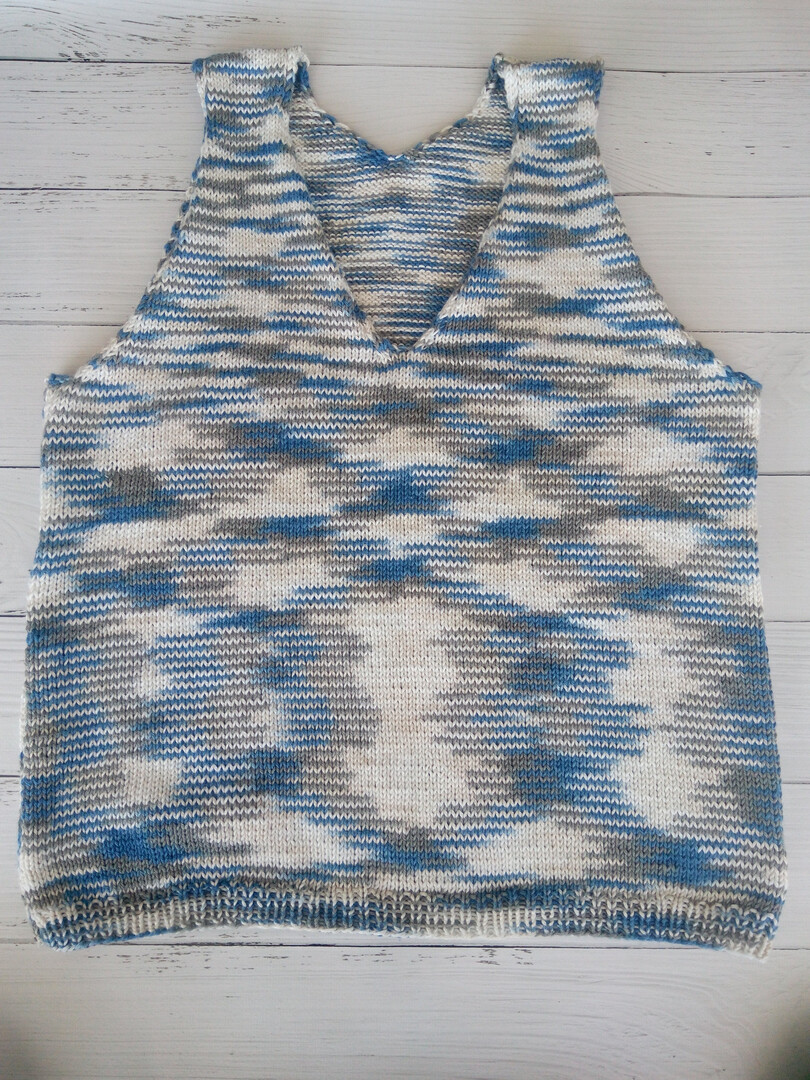 Knitted summer top Cotton top knitting V neck top Blue top women