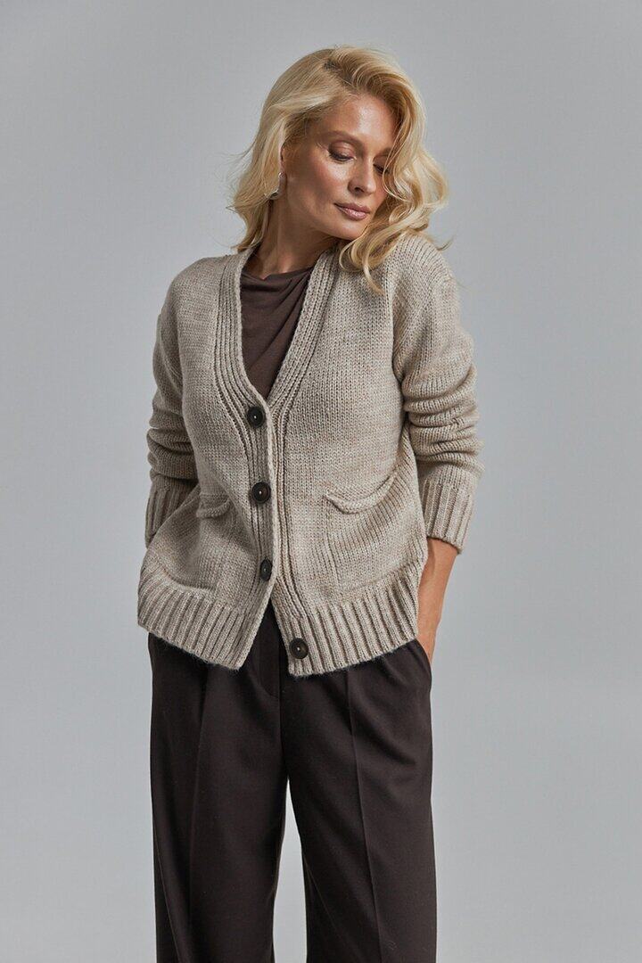 Women's loose fit knit jacket-bomber is made in soft, pleasent for touch yarn includes the silk, a tight knitting that does not deform and keeps its shape well.