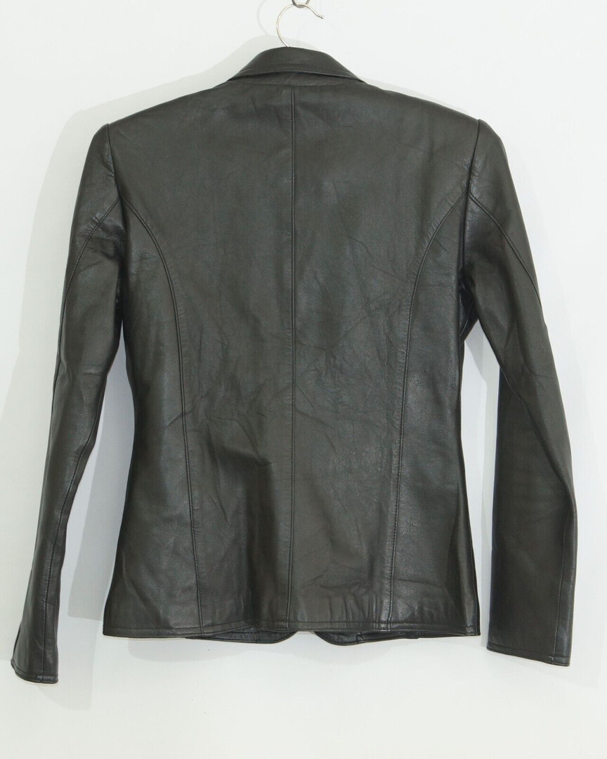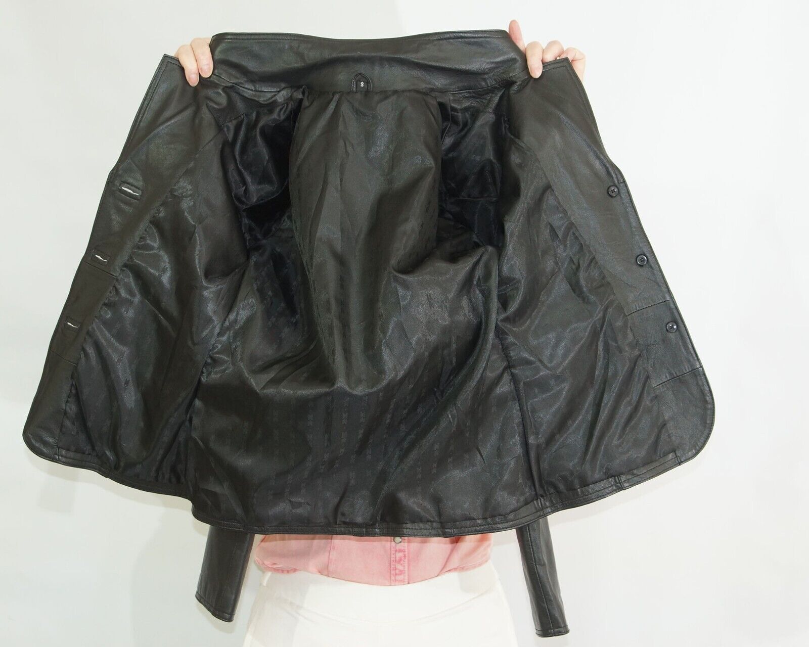 Elevate your style with this chic black leather jacket for ladies. Crafted from top-quality leather, this jacket features a soft texture and comfortable fit that is perfect for everyday wear. The jacket is designed with a classic basic style and marked as size S, making it an excellent choice for ladies who value both fashion and function. The polyester lining provides added warmth and comfort, while the black color adds a touch of sophistication to any outfit. Ideal for a variety of occasions, this leather jacket is a must-have in any wardrobe.
