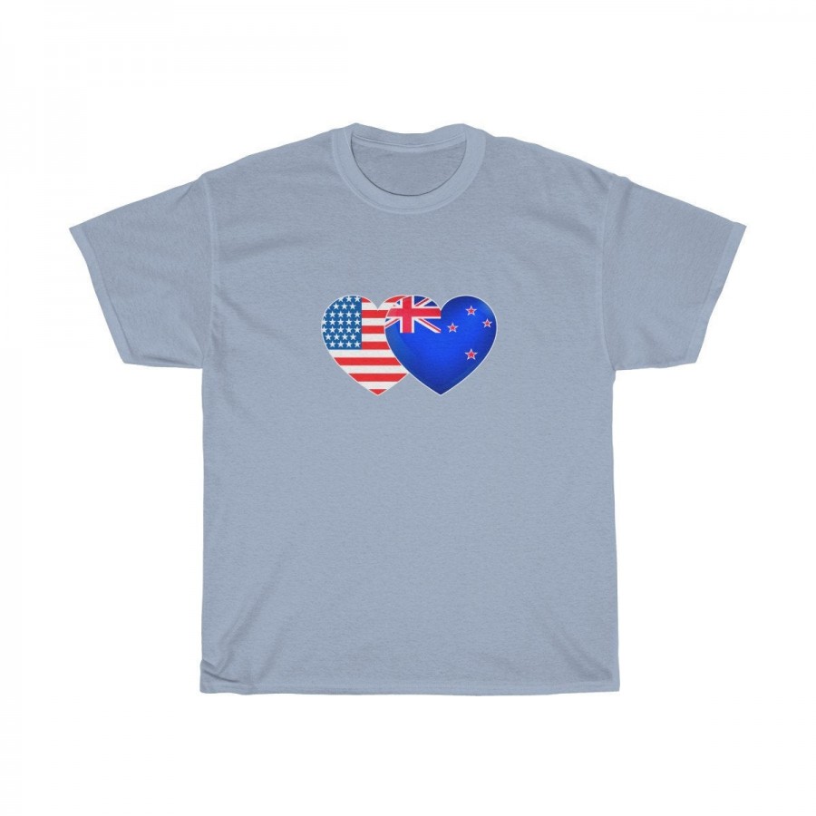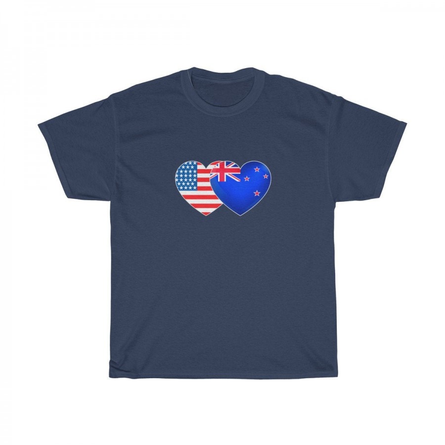 NZ and US Flag Twin Heart Shirt for New Zealander Americans Patriotic T-Shirt Immigration Emigration National Costume
