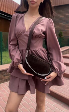 This stylish crossbody bag made of soft genuine suede is the perfect blend of elegance and practicality. Its compact size makes it convenient for everyday use, while the refined design adds charm to your look. The adjustable strap allows you to wear it over the shoulder or across the body, keeping your hands free. The bag features a main zippered compartment, as well as internal and external pockets for convenient storage of essentials. STRUCTURE: • One main zippered compartment • One inner zippered pocket • One inner open pocket • One front zippered pocket SPECIFICATIONS: Material: Genuine suede Leather type: Soft, velvety to the touch Model type: Crossbody Hardware: Metal Maximum strap length: 120 cm Additional detail: Metal chain Size (H × W × D): 14 × 21.5 × 5 cm