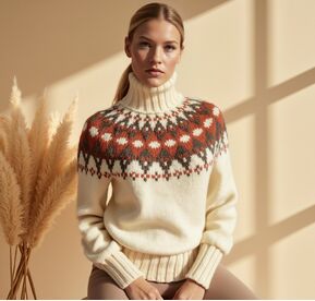 Scandinavian Fair Isle sweater Lopapeysa womens hand knitted in Natural White Merino Angora Silk blend, Wool Icelandic pullover, Traditional Nordic ski jumper. • Material – Premium Merino Angora Silk blend soft yarn • 100 % Handmade and Homemade locally in Ukraine / by our own employed knitters. / Made in a smoke-free and pet friendly environment/ • Style – Nordic knit pattern • Color – Creamy White, Terracotta, Marengo dark. / Product colour may slightly vary due to photographic lighting sources or your monitor settings/ • The model is 170 cm tall (regular S) • The sweater shown in pictures is L size slightly oversized. Details Sweater in the pictures : 1-Sweater Length 63 cm , 24,8 inch 2-Sweater Width 54 cm , 21,3 inch 3-Sweater Sleeves 52 cm , 20,5 inch