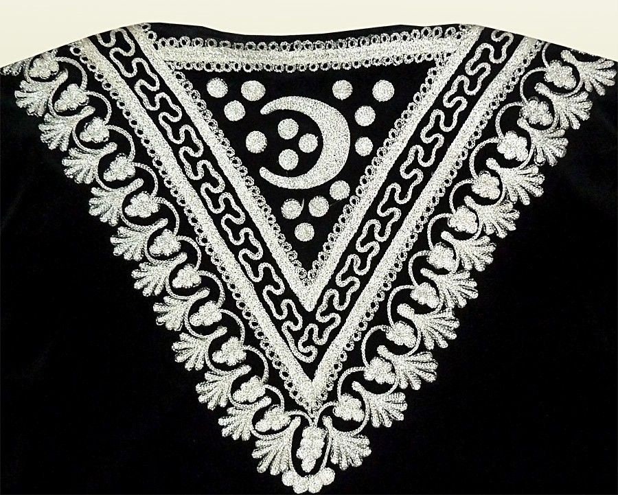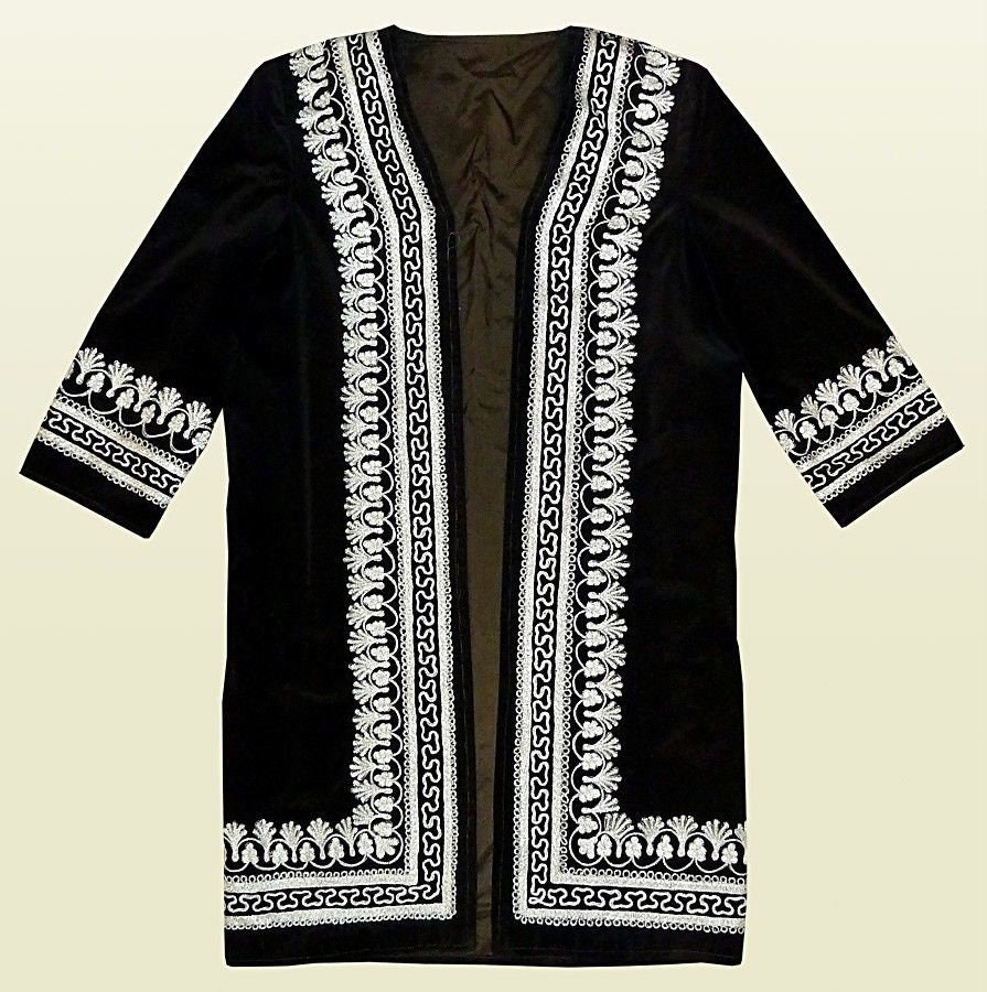 plus size fully silk embroidered black silk velvet caftan uzbek chapan #a2460