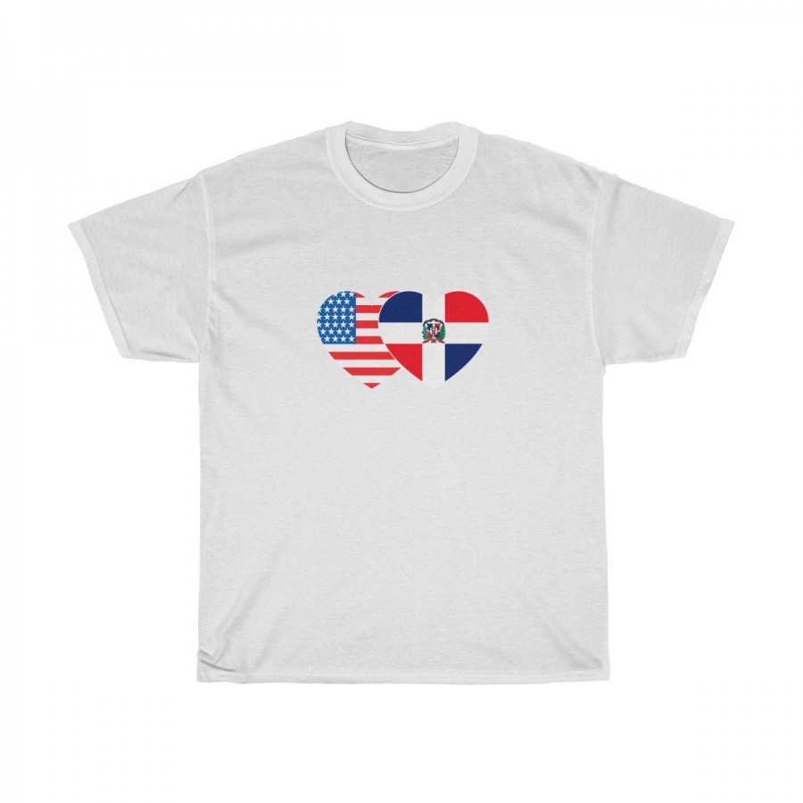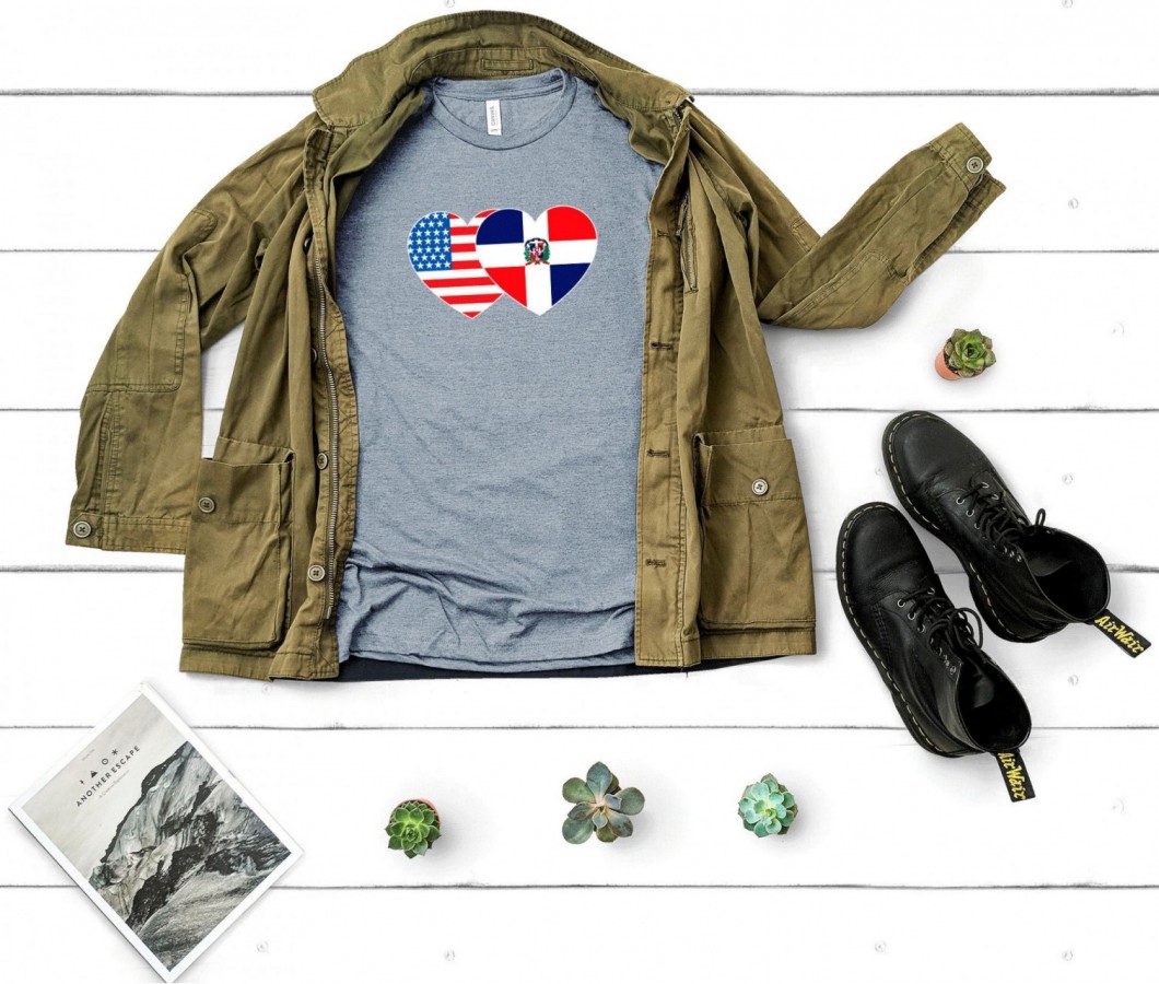 SALE TODAY Dominicana and USA Flag Twin Heart Shirt for Dominicanian Americans Patriotic TShirt Dual Immigration Emigration National Costume