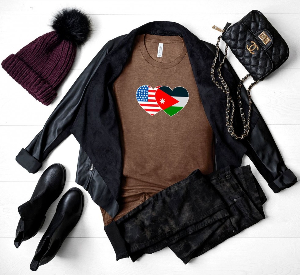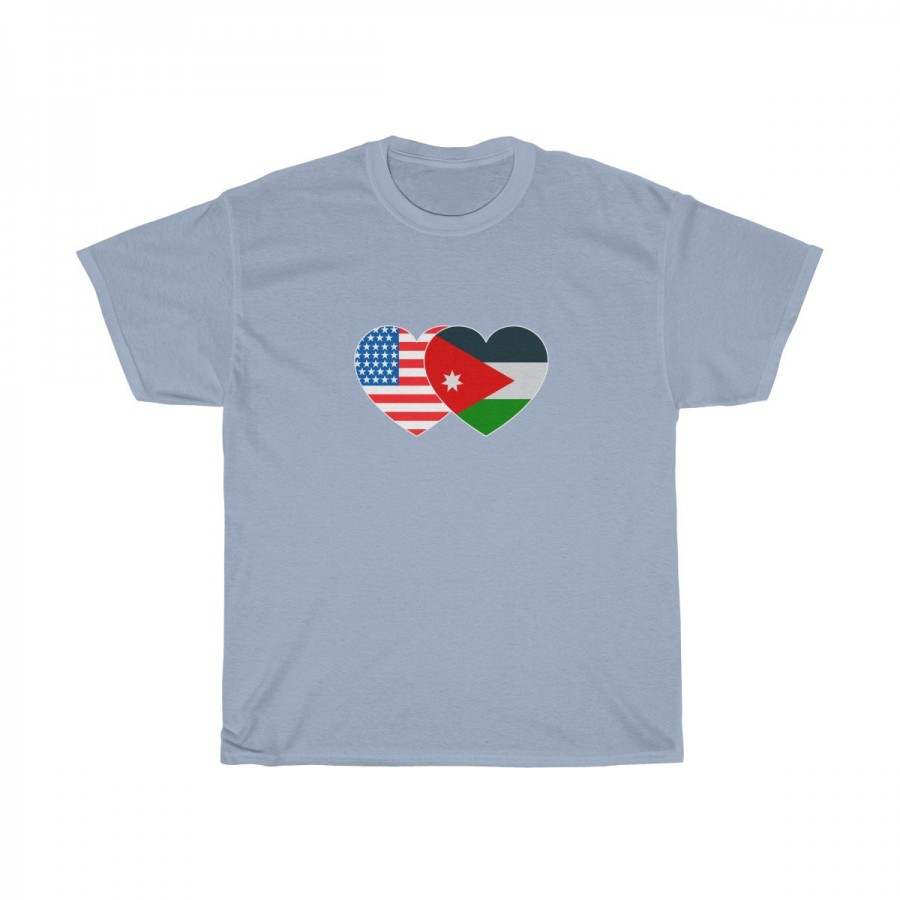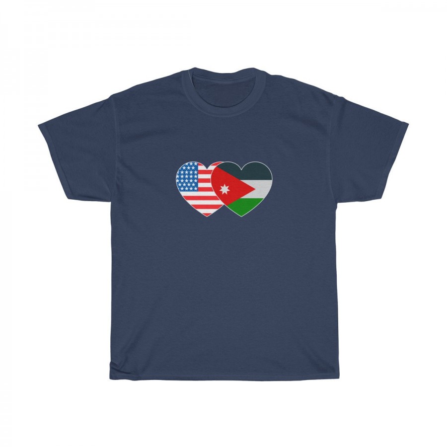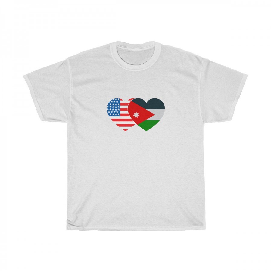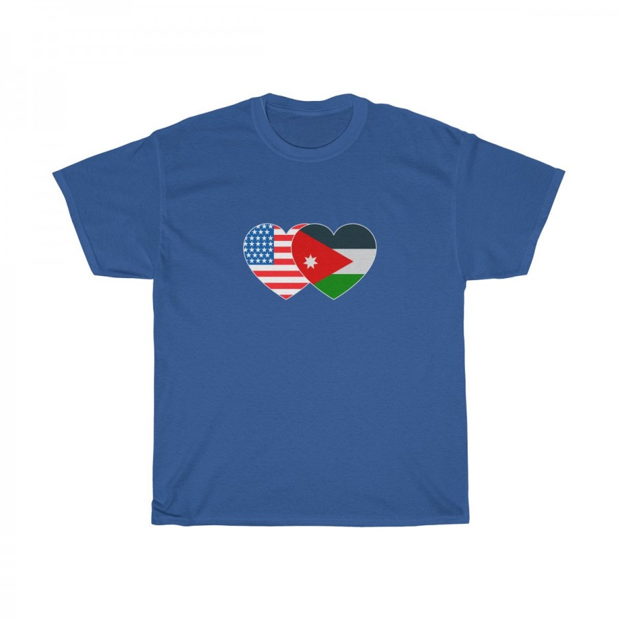 SALE TODAY: Jordan and USA Flag Twin Heart Shirt for Jordanian Americans Patriotic T-Shirt Dual Immigration Emigration National Costume