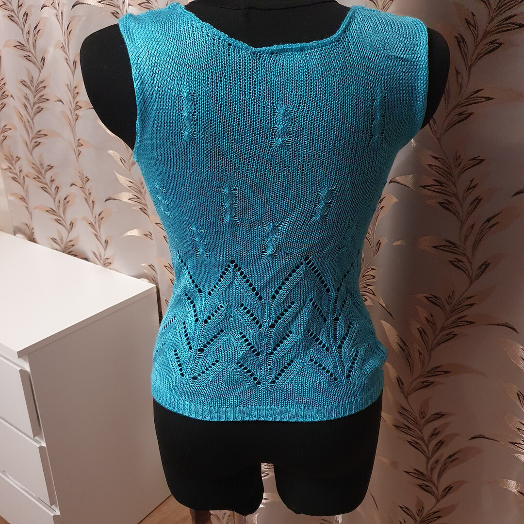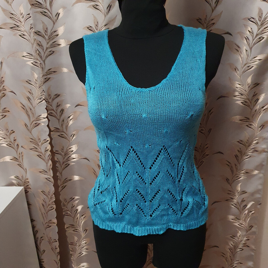 Stylish summer T-shirt - a top with an openwork pattern, made on a knitting machine. size M composition: acrylic