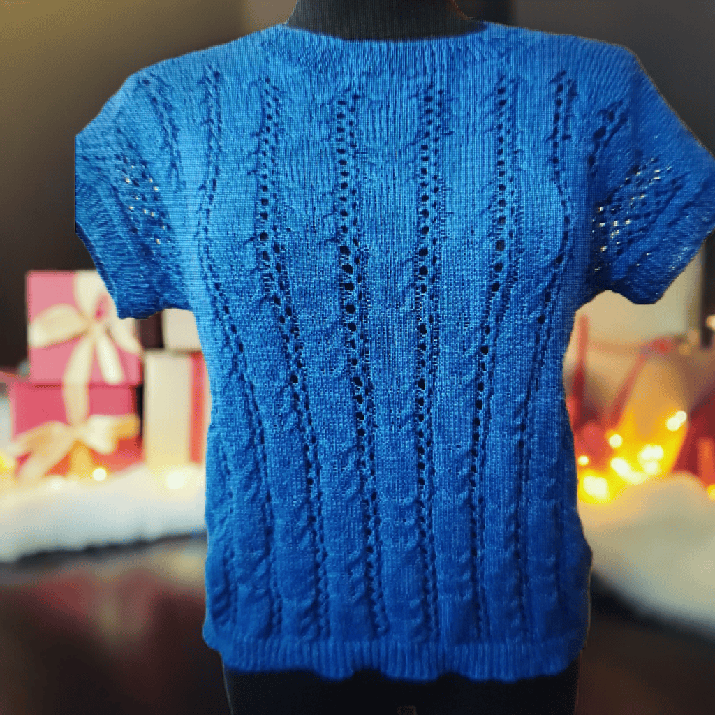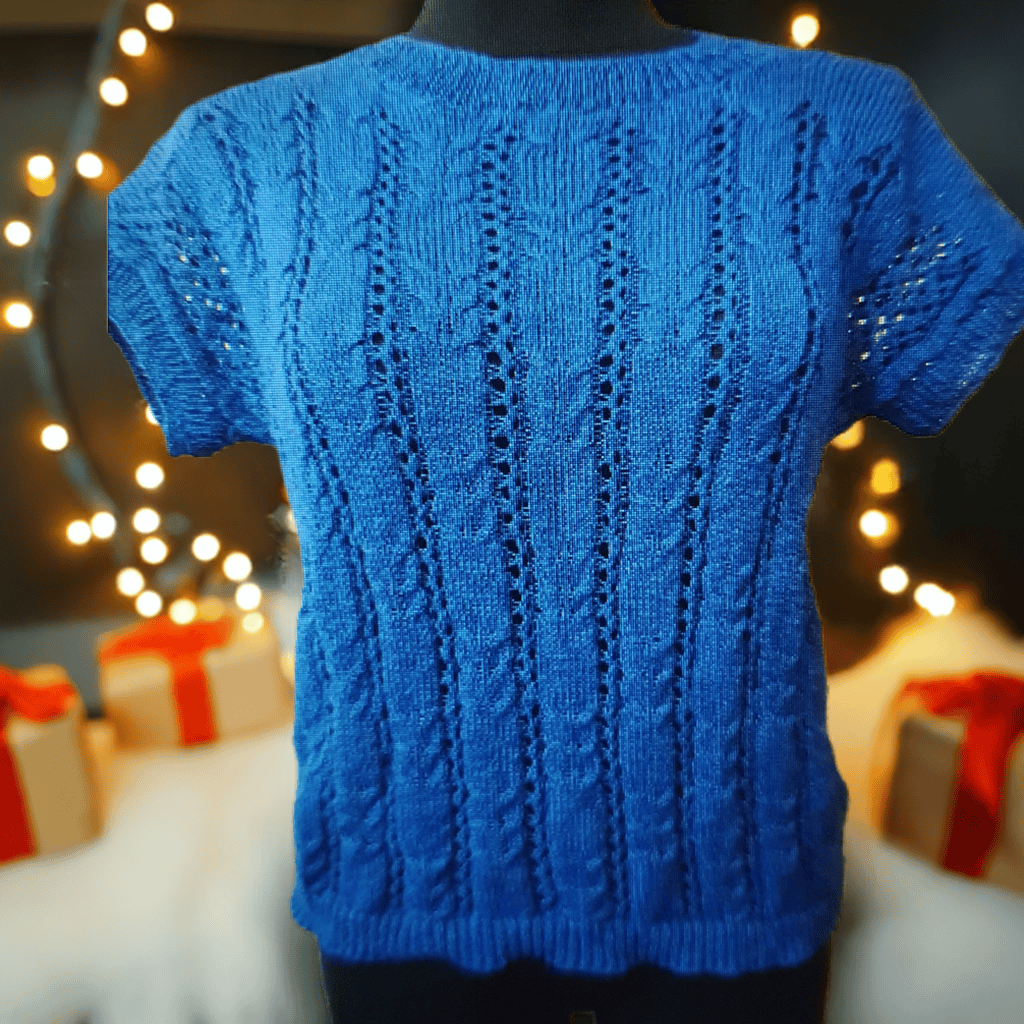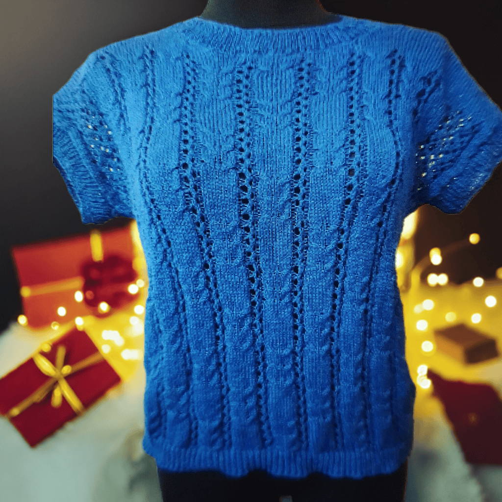Summer knitted t-shirt with short sleeves, made on a knitting machine with an openwork pattern. Soft, high-quality cotton creates comfort and coolness for the body in hot summer. . size: M composition: cotton 100>#/pre###