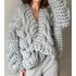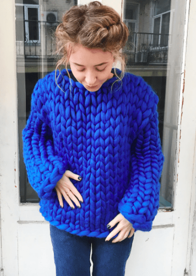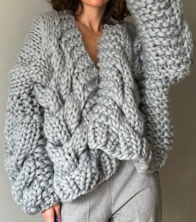 chunky knitted lagoon sweater and cable knitted red cardigan
