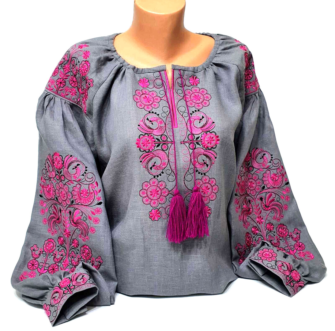Ukrainian Embroidered Blouse women grey Sorochka Vyshyvanka Tradition Any size