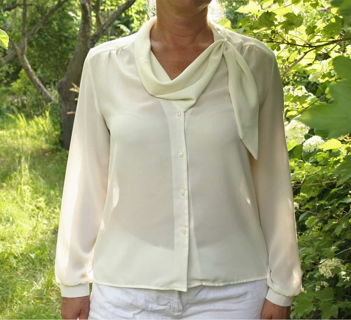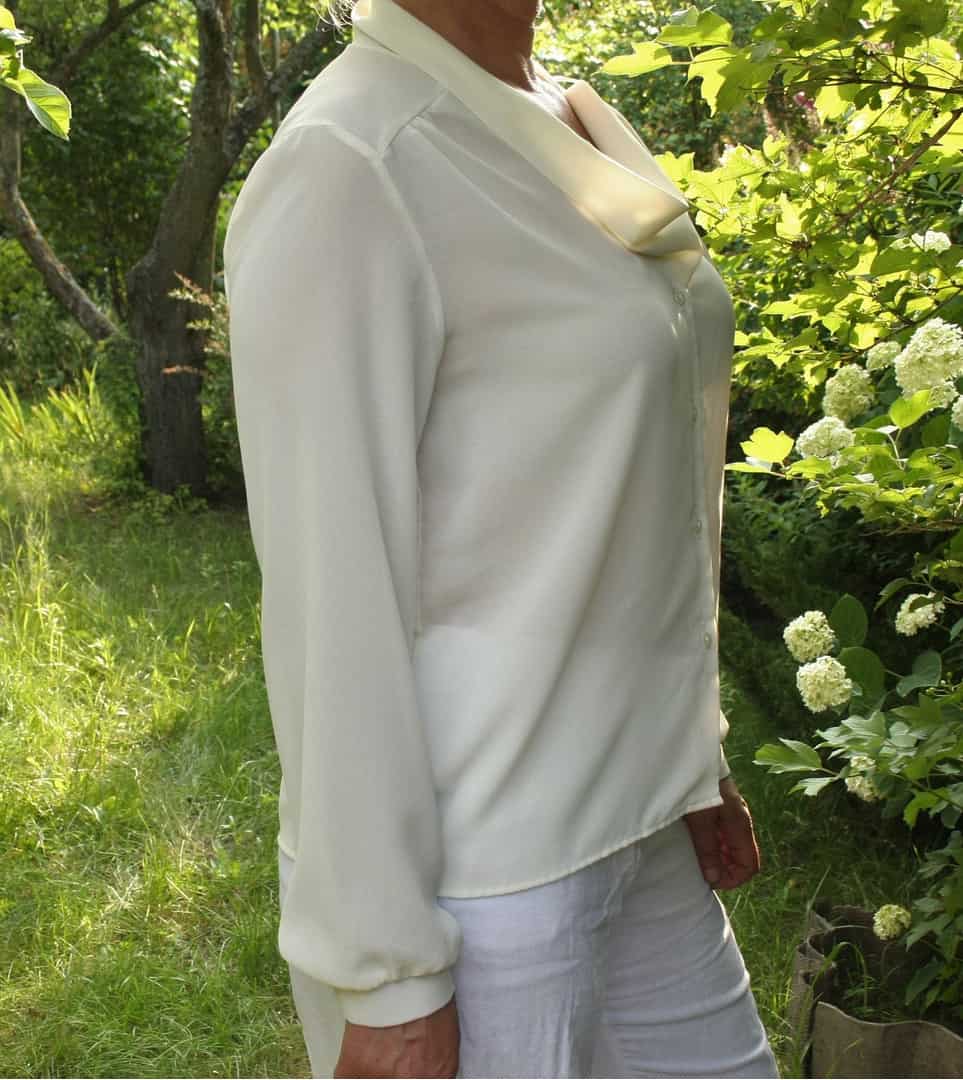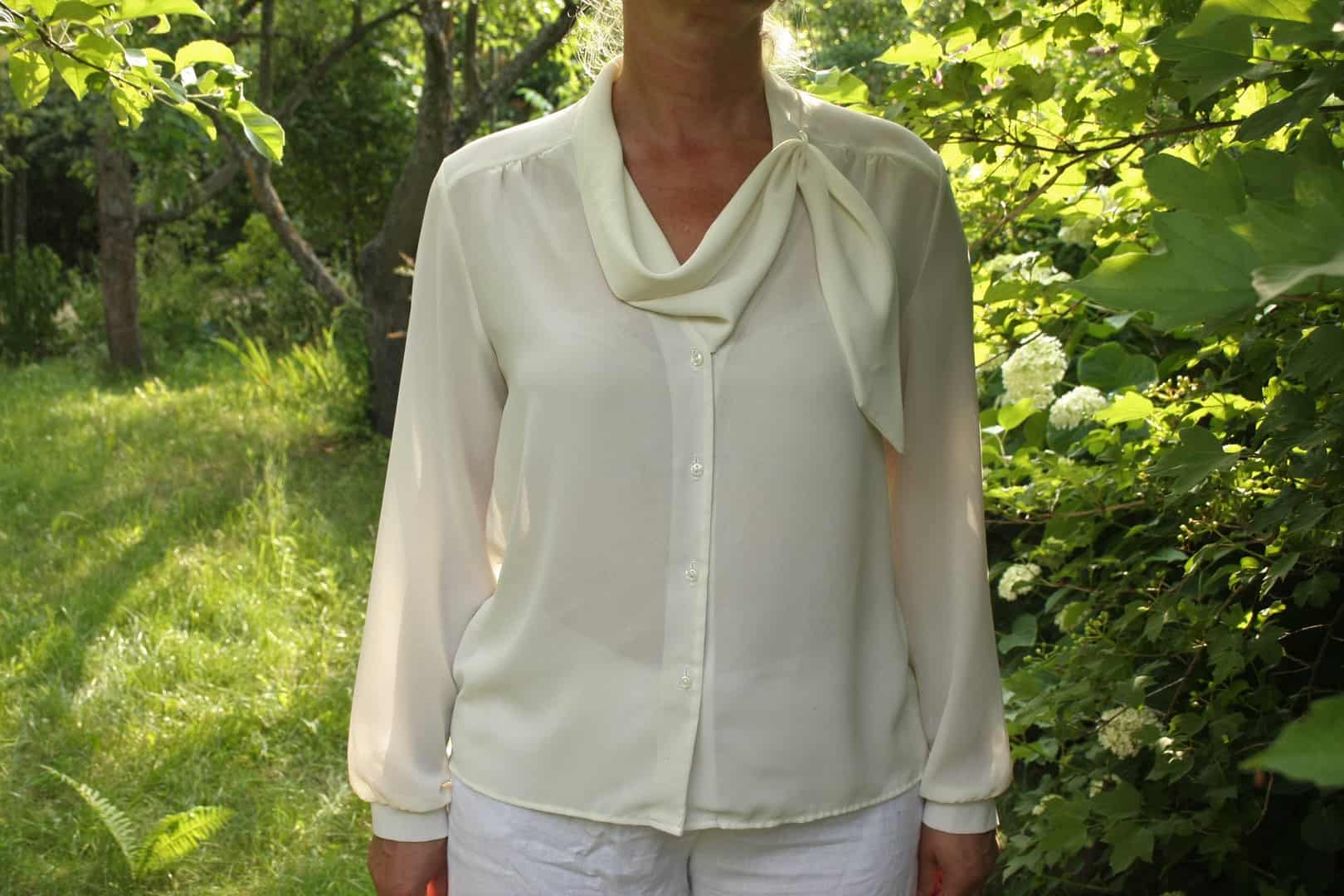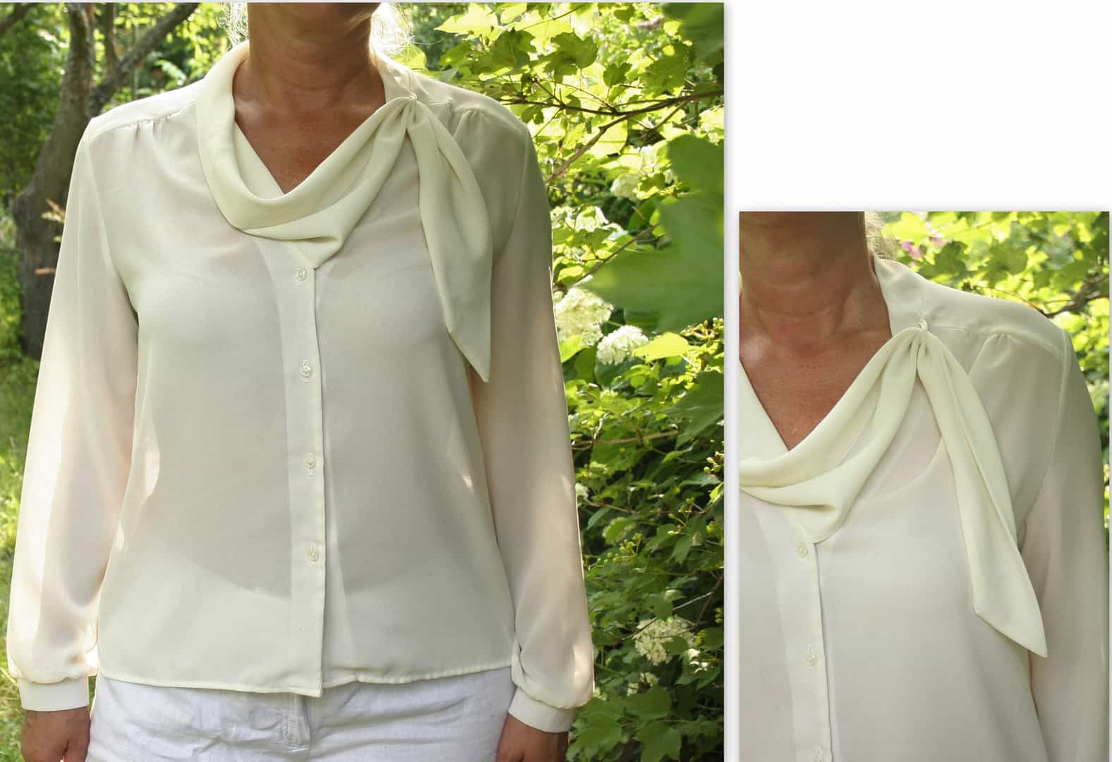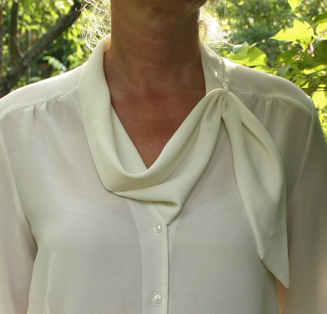 White designer blouse 14US Ladies plus size top Elegant band asymmetric collar top Office blouse Formal Romantic top Vtg Mad Men fashion top