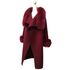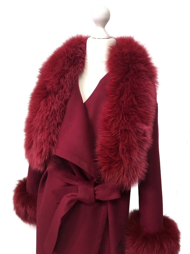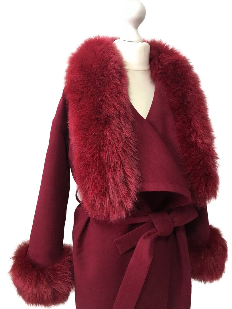 Women Cherry Coat long Cashmere and trim arctic fox fur, Wrap elegant womens coat